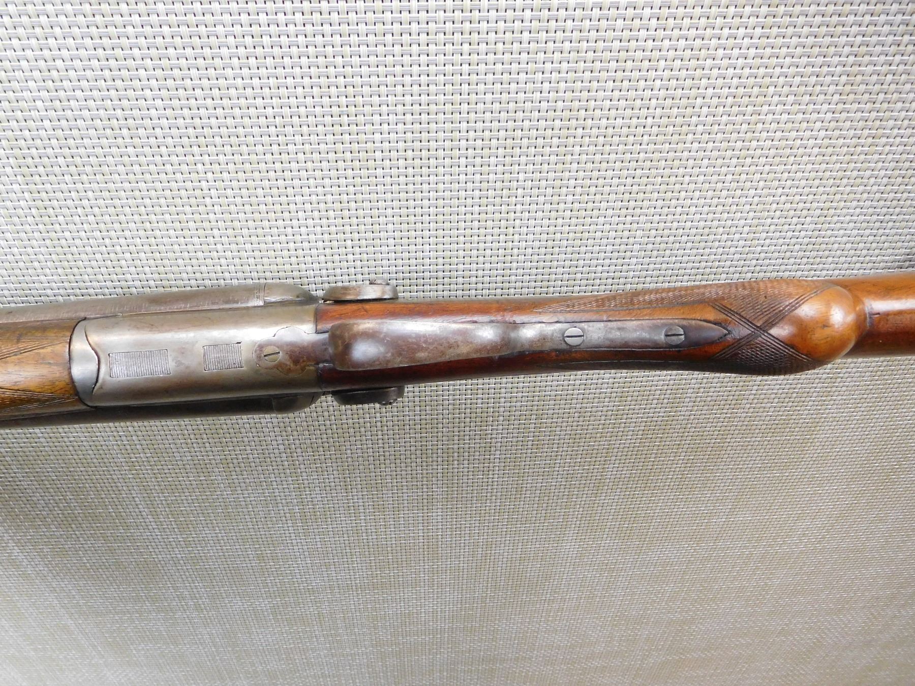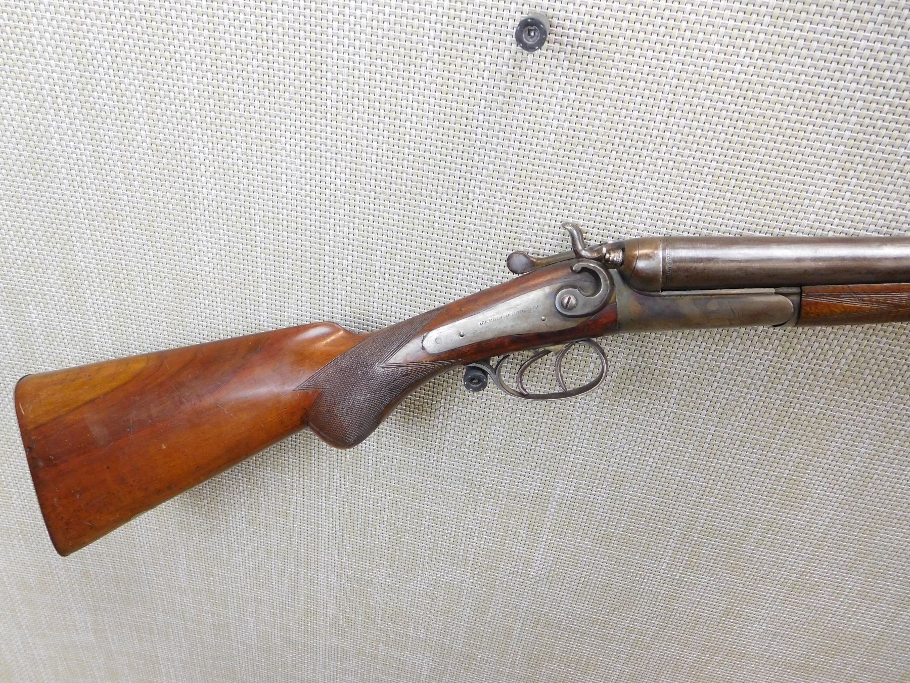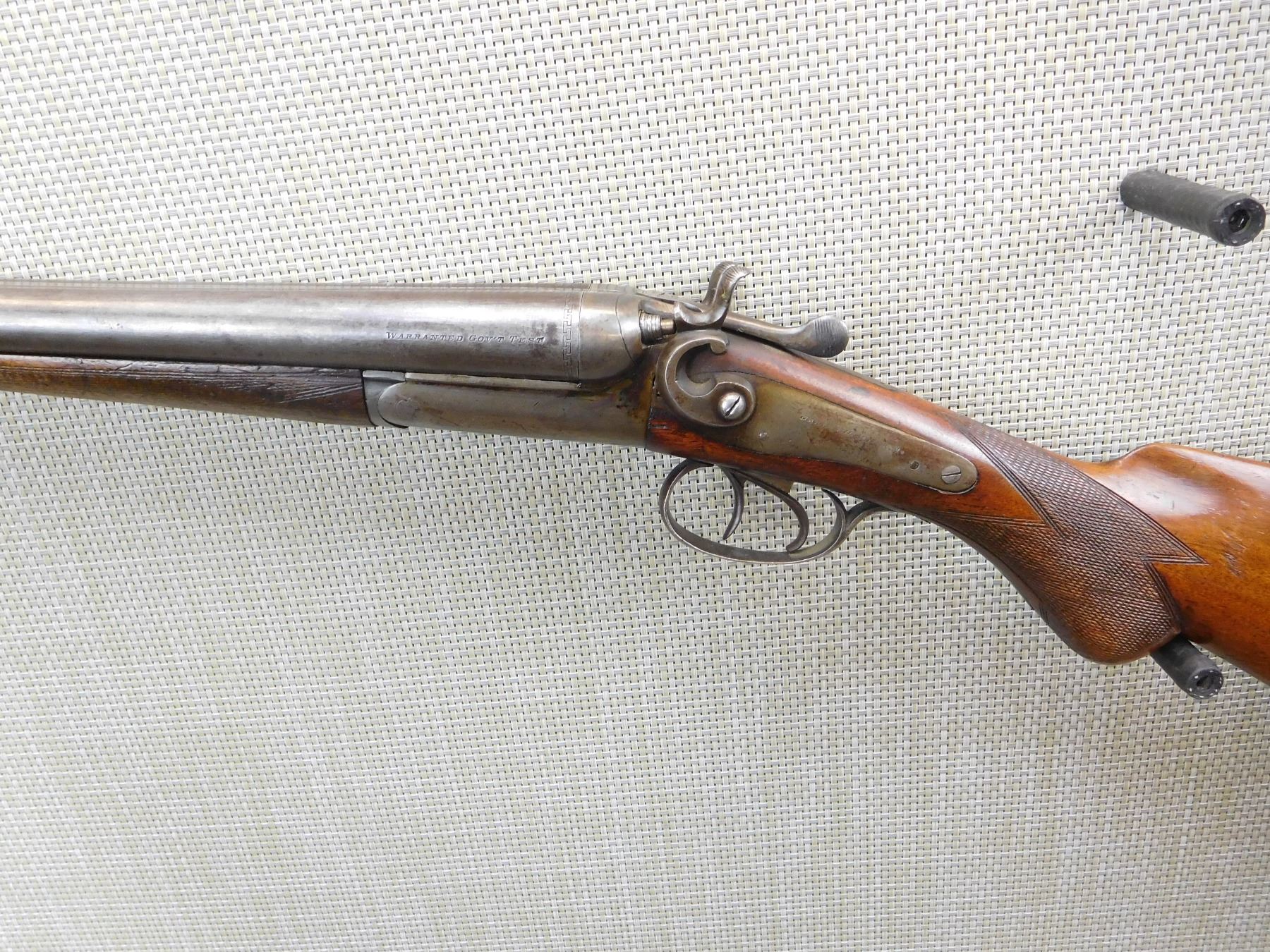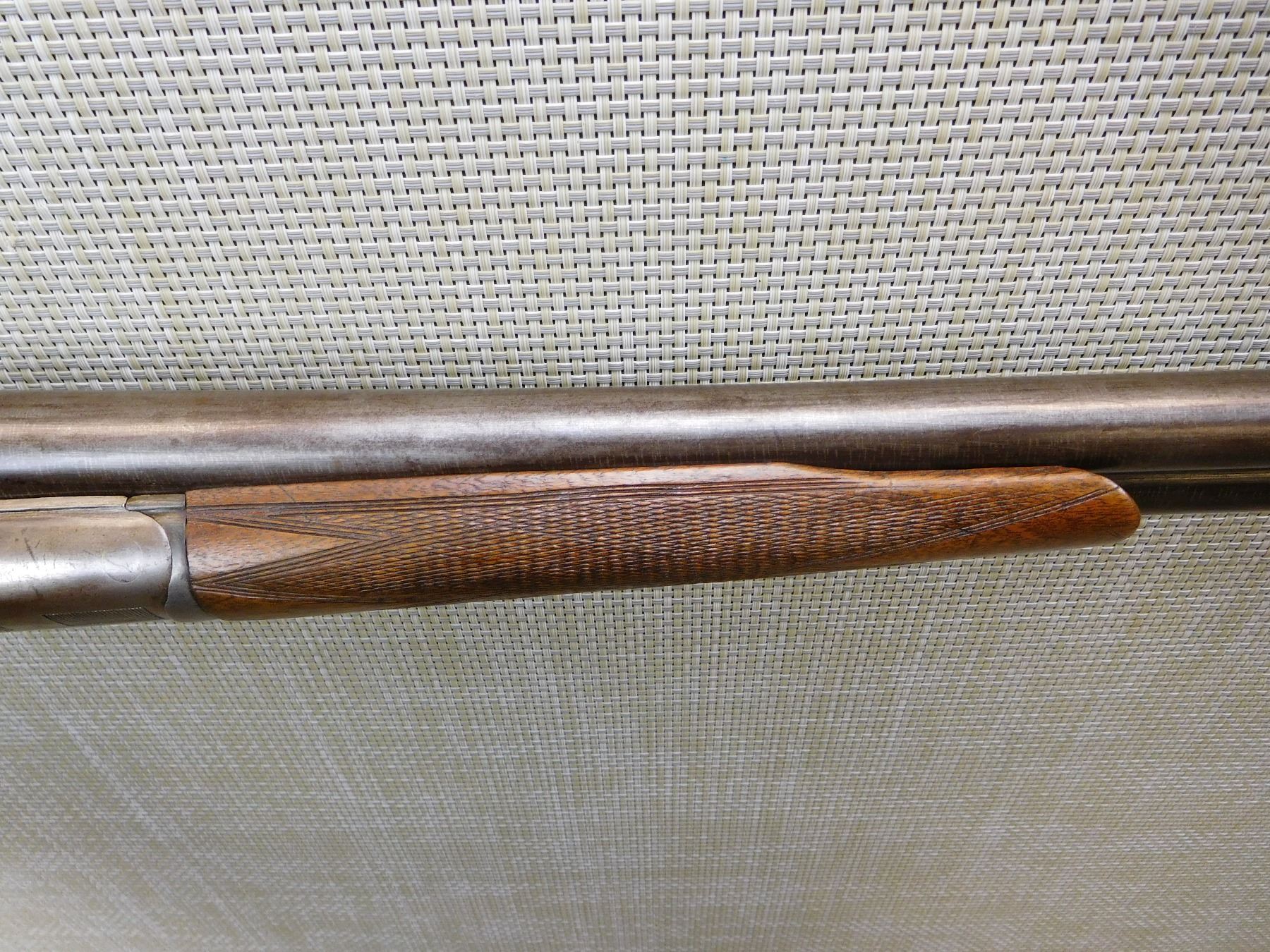 DOLLS HEAD BARREL EXTENSION, CASE HARDENED RECEIVER, LAMINATED STEEL BARRELS, BEAD FRONT SIGHT, CHECKERED PRINCE OF WALES STOCK THERE IS A SMALL CHIP OUT OF THE FOREND, STEEL BUTT PLATE, BORE IS EXCELLENT, HAS A FULL AND MODIFIED FIXED CHOKES , ACTION: SIDE BY SIDE BREAK ACTION DOUBLE HAMMER DOUBLE TRIGGER , BARREL LENGTH: 30" , STOCK # 7114 , SERIAL # 21415 , CONDITION: 7/10 , CLASS: CANADIAN NON RESTRICTED CLASS
