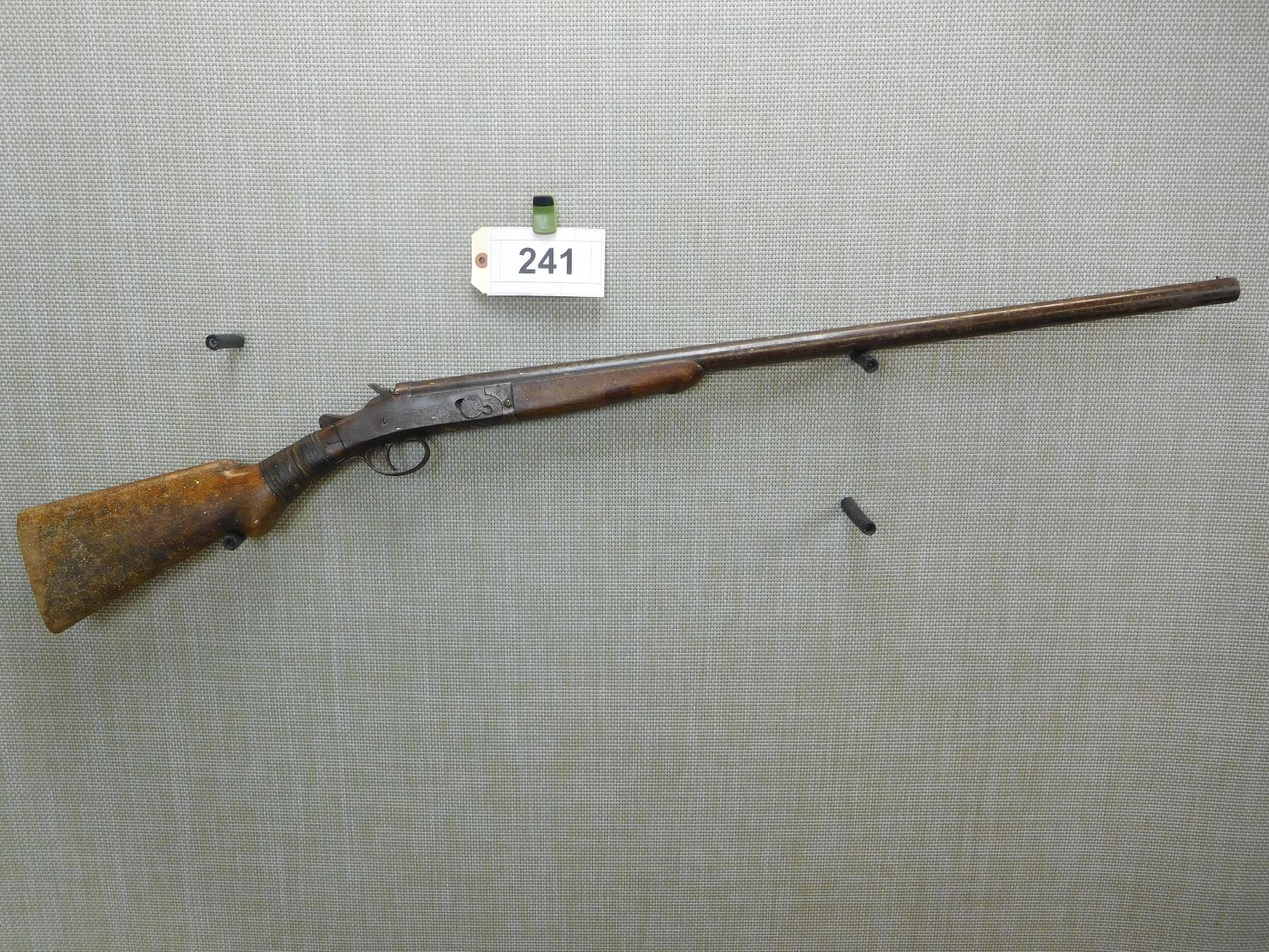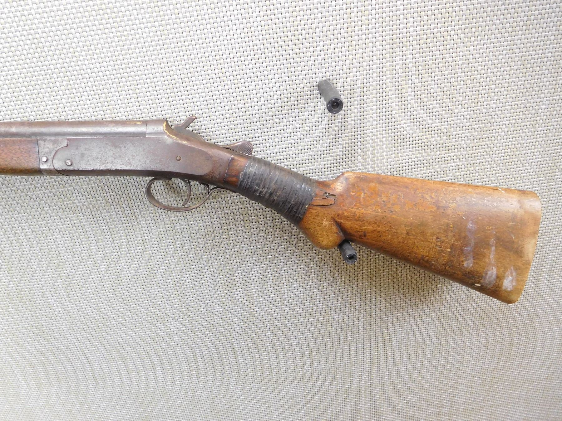 DAVENPORT TAKEDOWN, DARK BORE, BEAD FRONT SIGHT, BORE IS DARK , STOCK IS TAPED, PAINT RESIDUE MISSING THE BUTT PLATE, RUSTY FINISH , ACTION: SINGLE SHOT BREAK ACTION SHOTGUN , BARREL LENGTH: 30" , STOCK # 7133 , SERIAL # N/A , CONDITION: 2/10 , CLASS: CANADIAN NON RESTRICTED CLASS