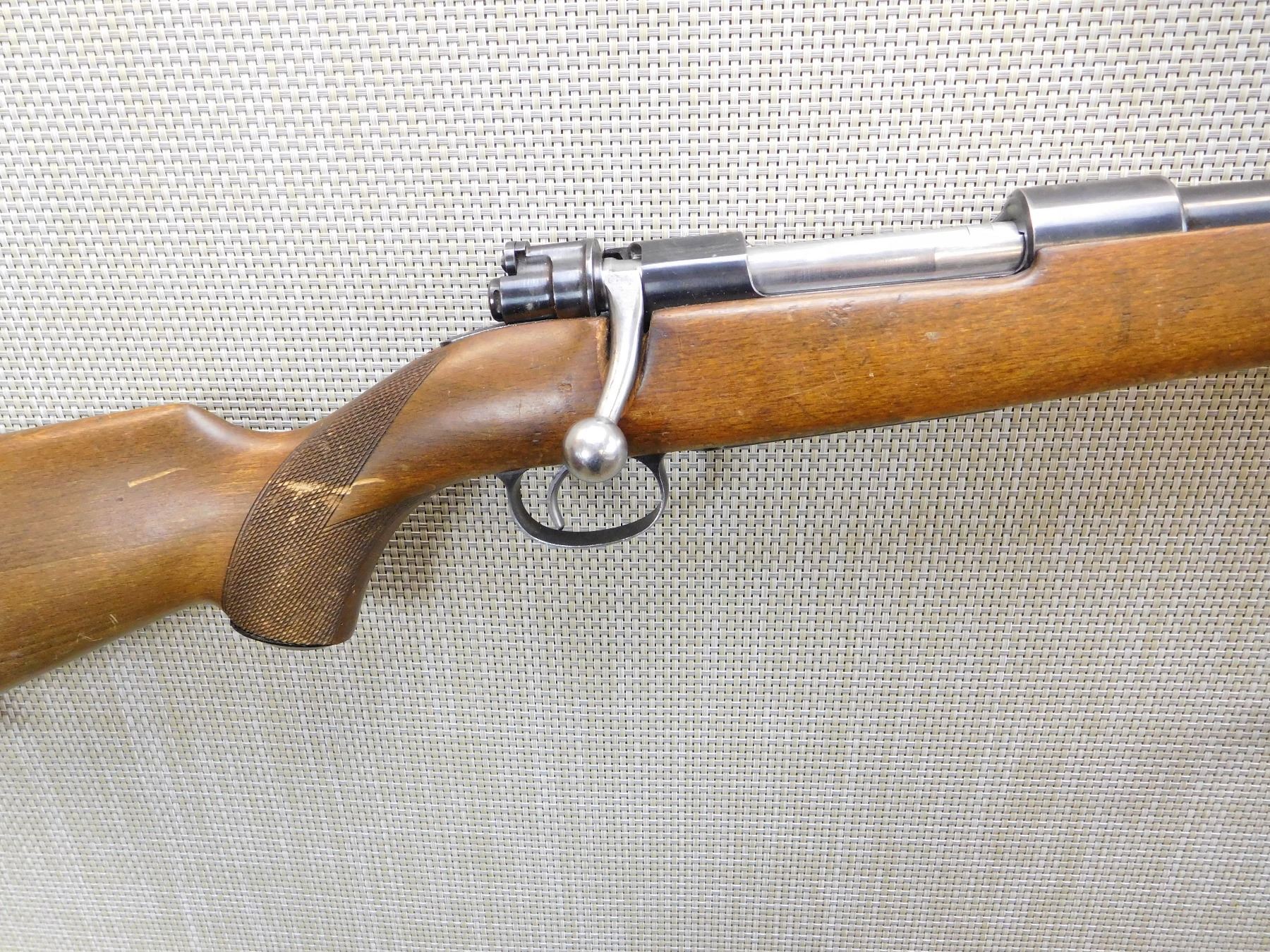 MADE BY HUSQVARNA, RECEIVER IS DRILLED AND TAPPED FOR SCOPE MOUNTS, RAMPED OVETAILED FRONT SIGHT, NO REAR SIGHT, VERY GOOD BORE, THE BUTT STOCK HAS BEEN CARVED TO FIT THE REPLACEMENT BUTT PLATE , ACTION: BOLT ACTION RIFLE , BARREL LENGTH: 19" , STOCK # 7170 , SERIAL # 130024 , CONDITION: 5/10 , CLASS: CANADIAN NON RESTRICTED CLASS