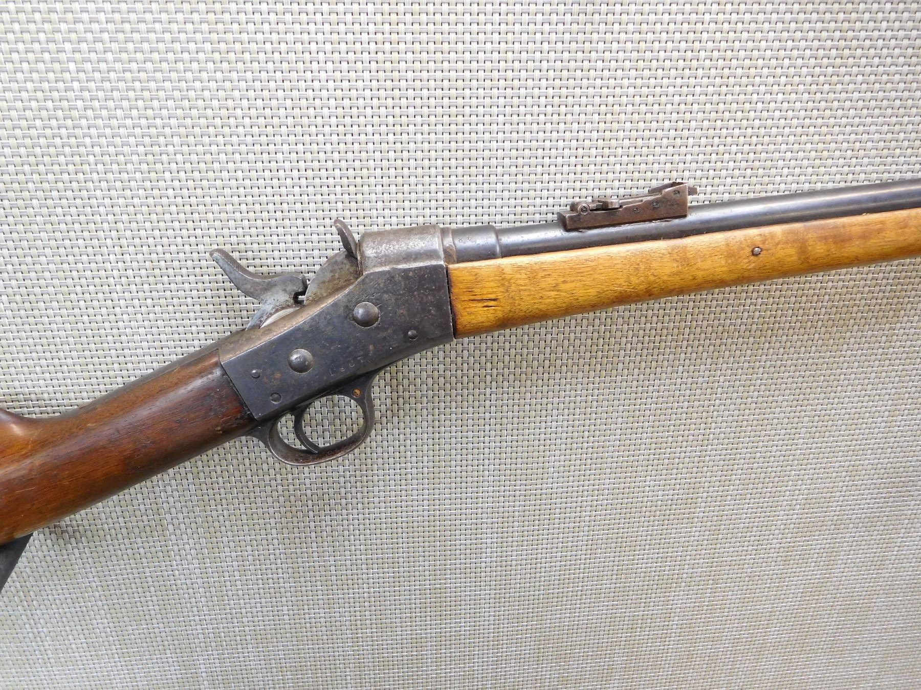 MARKED 1867, MAYBE A CONVERSION OF THE 1867/96 DANISH RIFLE. REPLACED MISMATCHED FOREND, DOVETAIL FRONT AND FULLY ADJUSTABLE REAR SIGHT, HOLDS COCK AND FIRES, VERY GOOD BORE, SLING SWIVEL, STEEL BUTT PLATE , ACTION: ROLLING BLOCK RIFLE , BARREL LENGTH: 28" , STOCK # 7184 , SERIAL # 7735 , CONDITION: 5/10 , CLASS: CANADIAN NON RESTRICTED CLASS