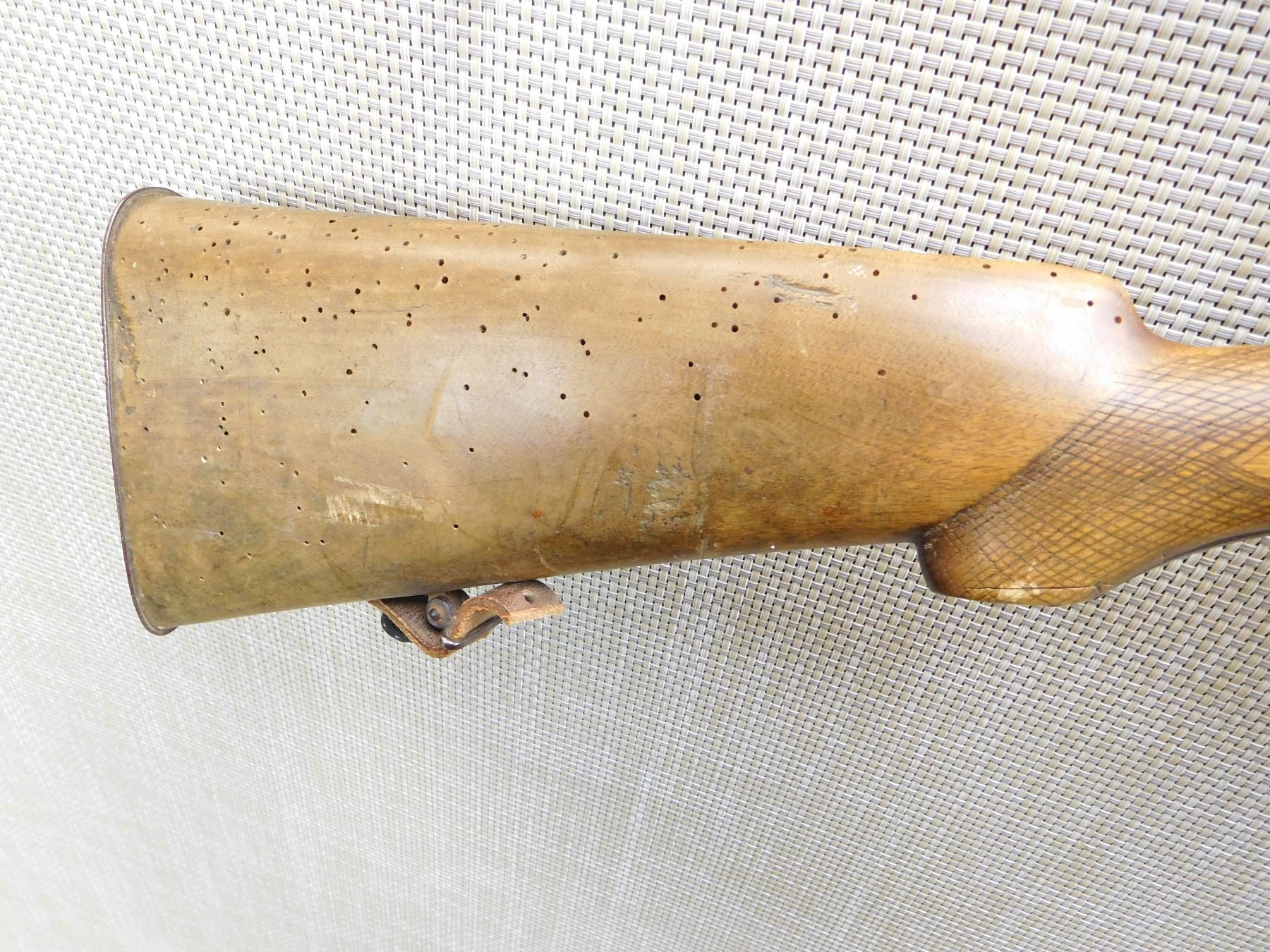 DAMASCUS BAARRELS, BACK ACTION LOCK, DARK BORES, FIXED MODIFIED CHOKES, SLING SWIVEL STUDS, CRACK IN THE FOREND STOCK, CRACKED BUTT STOCK WITH INSECT DAMAGE, HOLDS COCK AND FIRES, LOOSE LOCK UP , ACTION: SIDE BY SIDE BREAK ACTION DOUBLE HAMMERS DOUBLE TRIGGERS , BARREL LENGTH: 30" , STOCK # 7195 , SERIAL # 7750 , CONDITION: 3/10 , CLASS: CANADIAN NON RESTRICTED CLASS