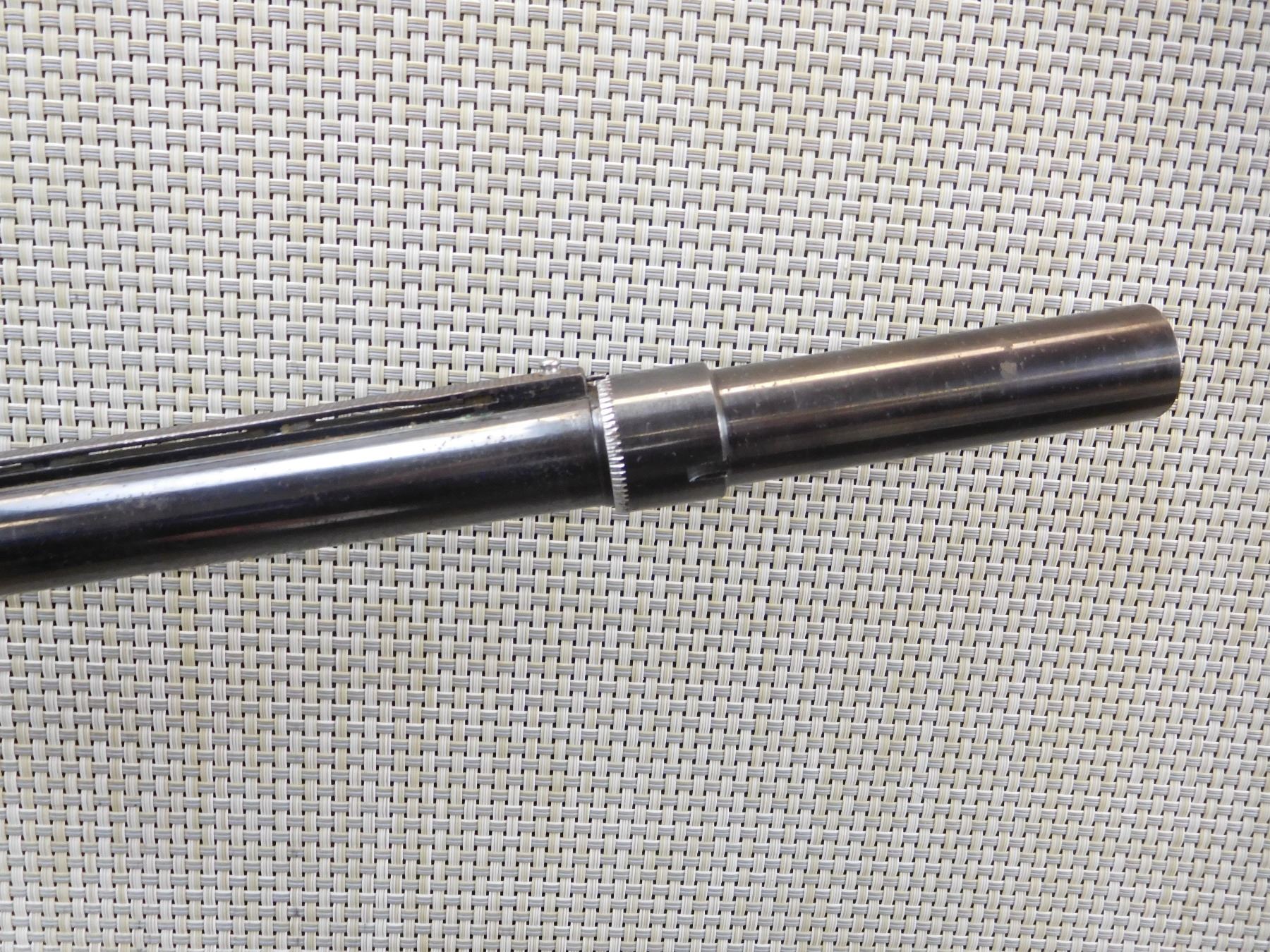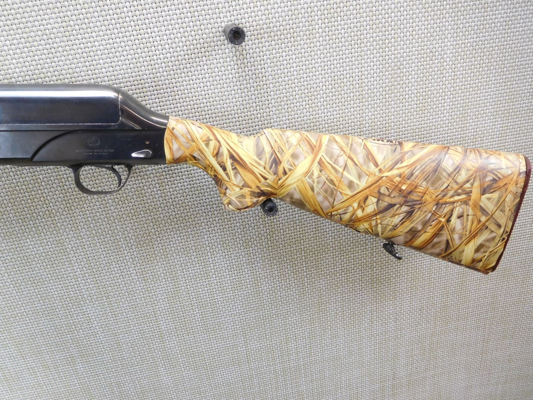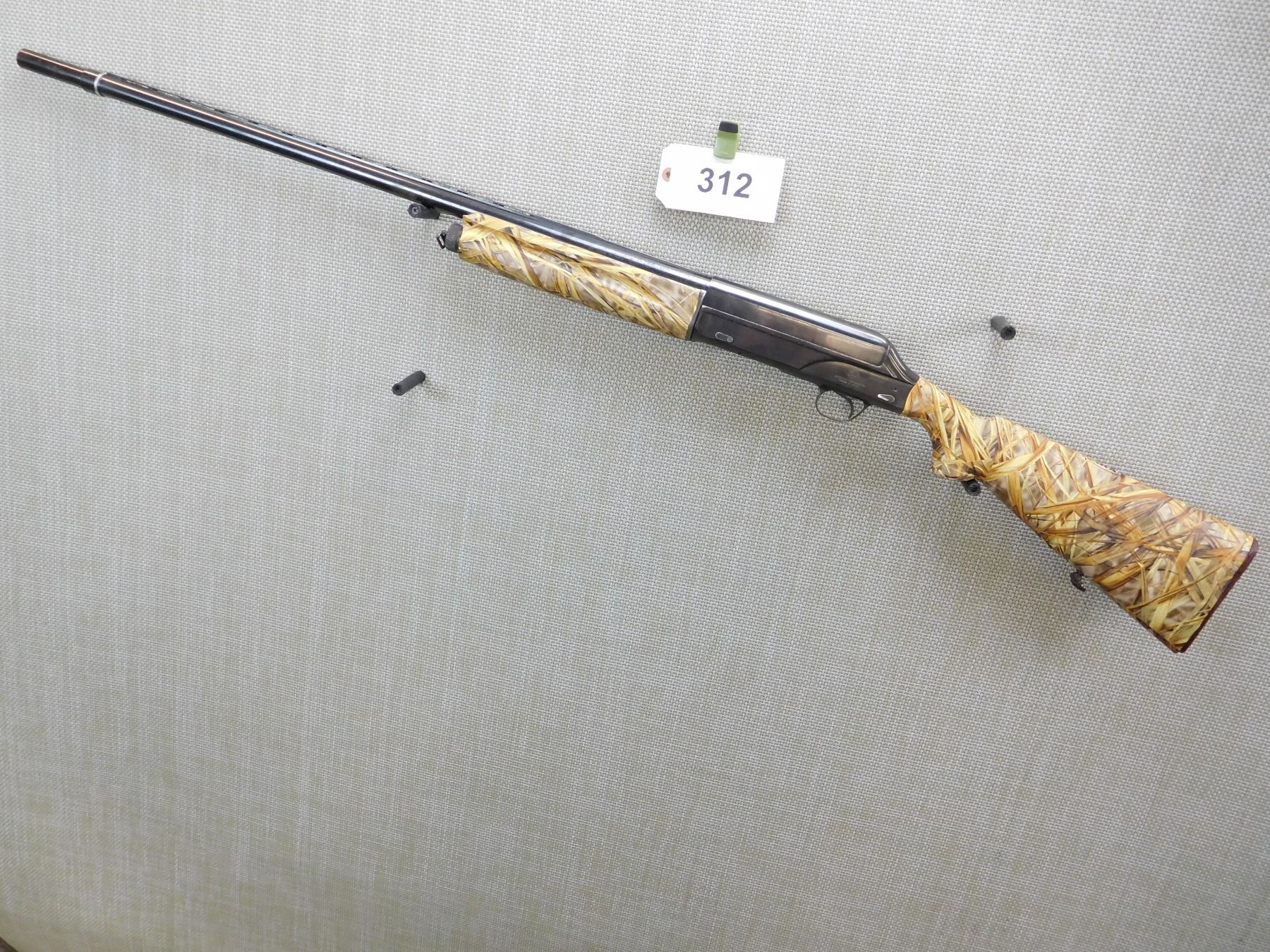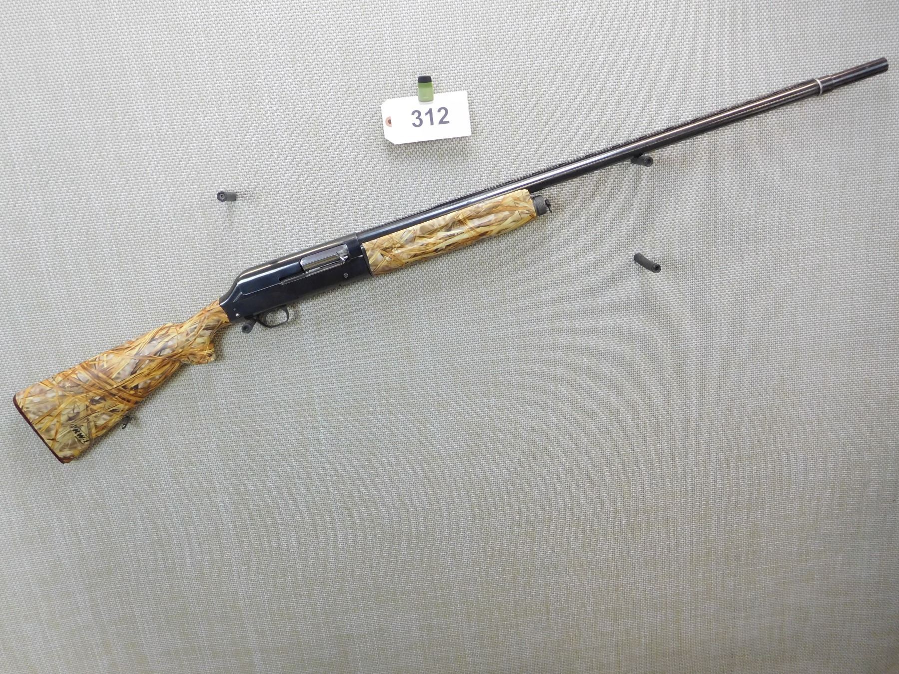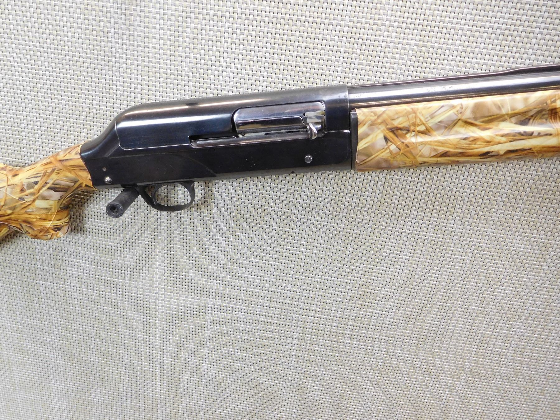 CAMO TAPE OVER STOCK, RAISED VENTED RIB BARREL WITH A BEAD FRONT SIGHT, EXTERNAL REMOVABLE CHOKE TUBE, BORE IS GOOD, SLING LOOPS, , ACTION: SEMI AUTOMATIC SHOTGUN , BARREL LENGTH: 28" , STOCK # 7204 , SERIAL # 63573 , CONDITION: 6/10 , CLASS: CANADIAN NON RESTRICTED CLASS
