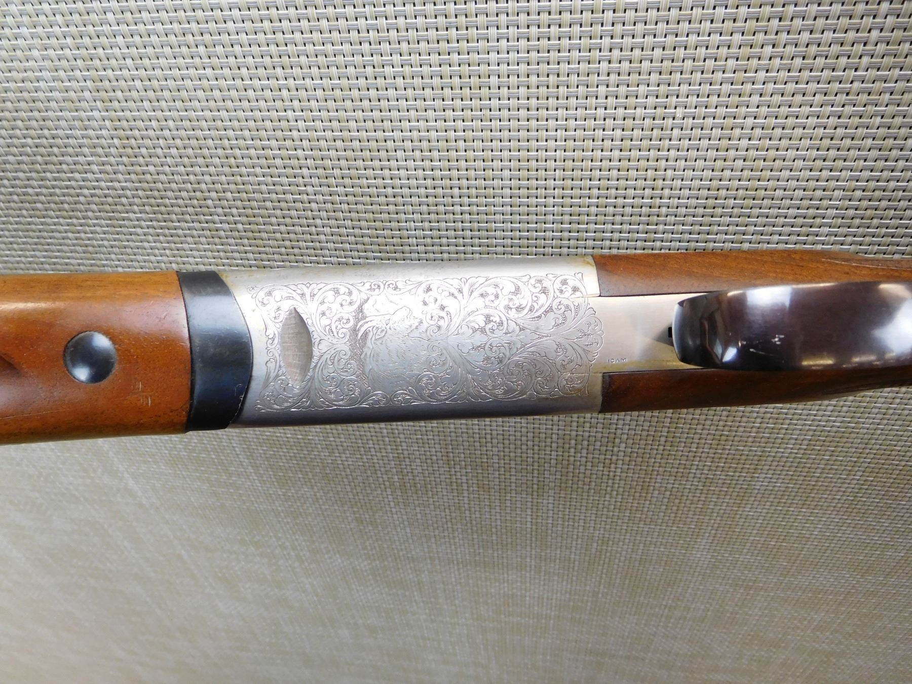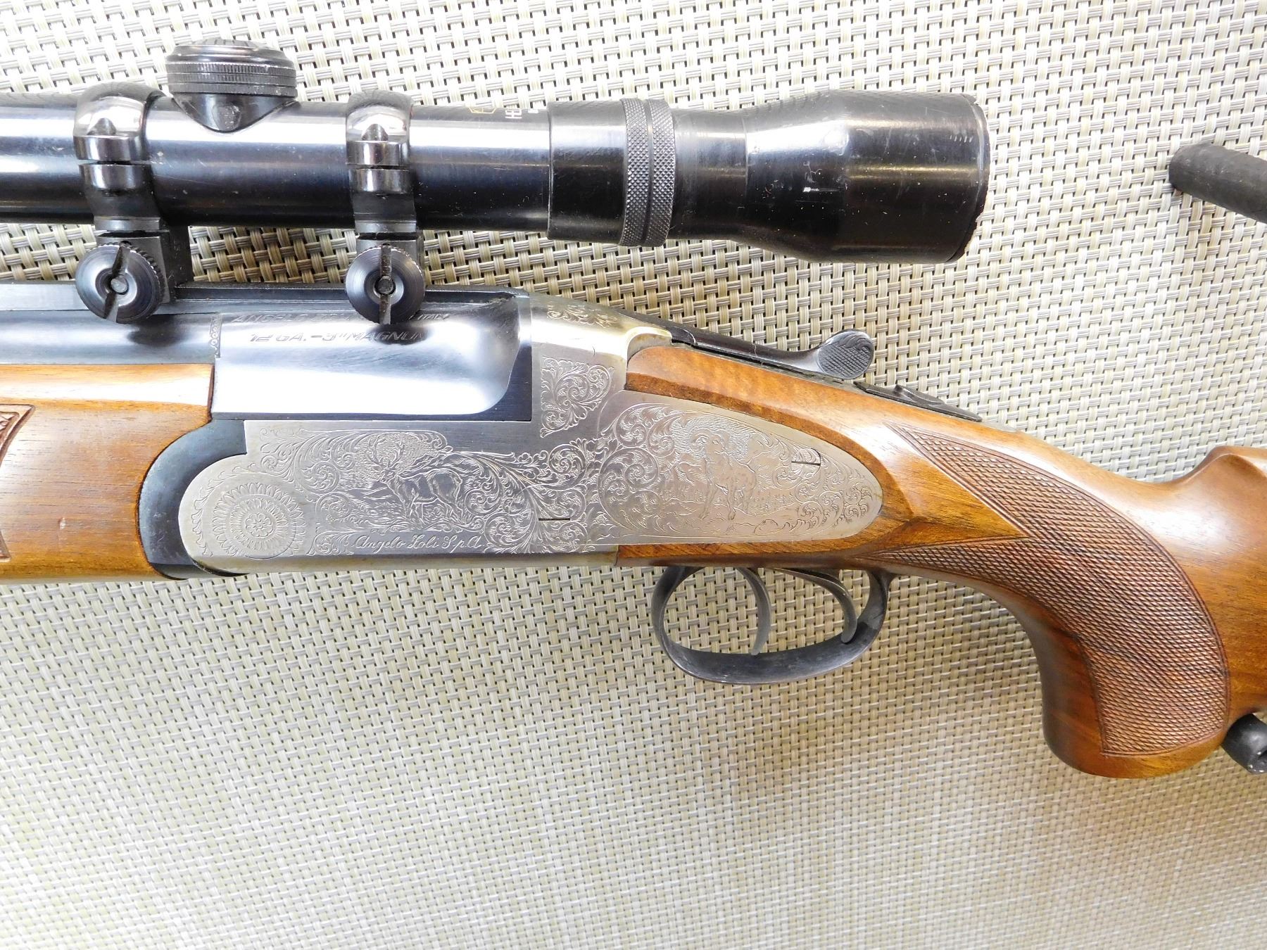 SLING SWIVEL STUDS, BORE IS EXCELLENT, VENTED RUBBER RECOIL PAD, SLING LOOP,S CHECKERED FORENED AND PISTOL GRIP WITH BUTT STOCK AND RAISED CHEEK PIECE, FIXED FRONT AND FOLDING REAR SIGHTS, KAHLES SCOPE 2 POWER, RICHLEY ENGRAVED RECEIVER WITH SIDE LOCKS, CHOKE IS FULL FIXED , ACTION: OVER UNDER BREAK ACTION COMBINATION GUN , BARREL LENGTH: 24 1/2" , STOCK # 7251 , SERIAL # CAT2929 , CONDITION: 8/10 , CLASS: CANADIAN NON RESTRICTED CLASS