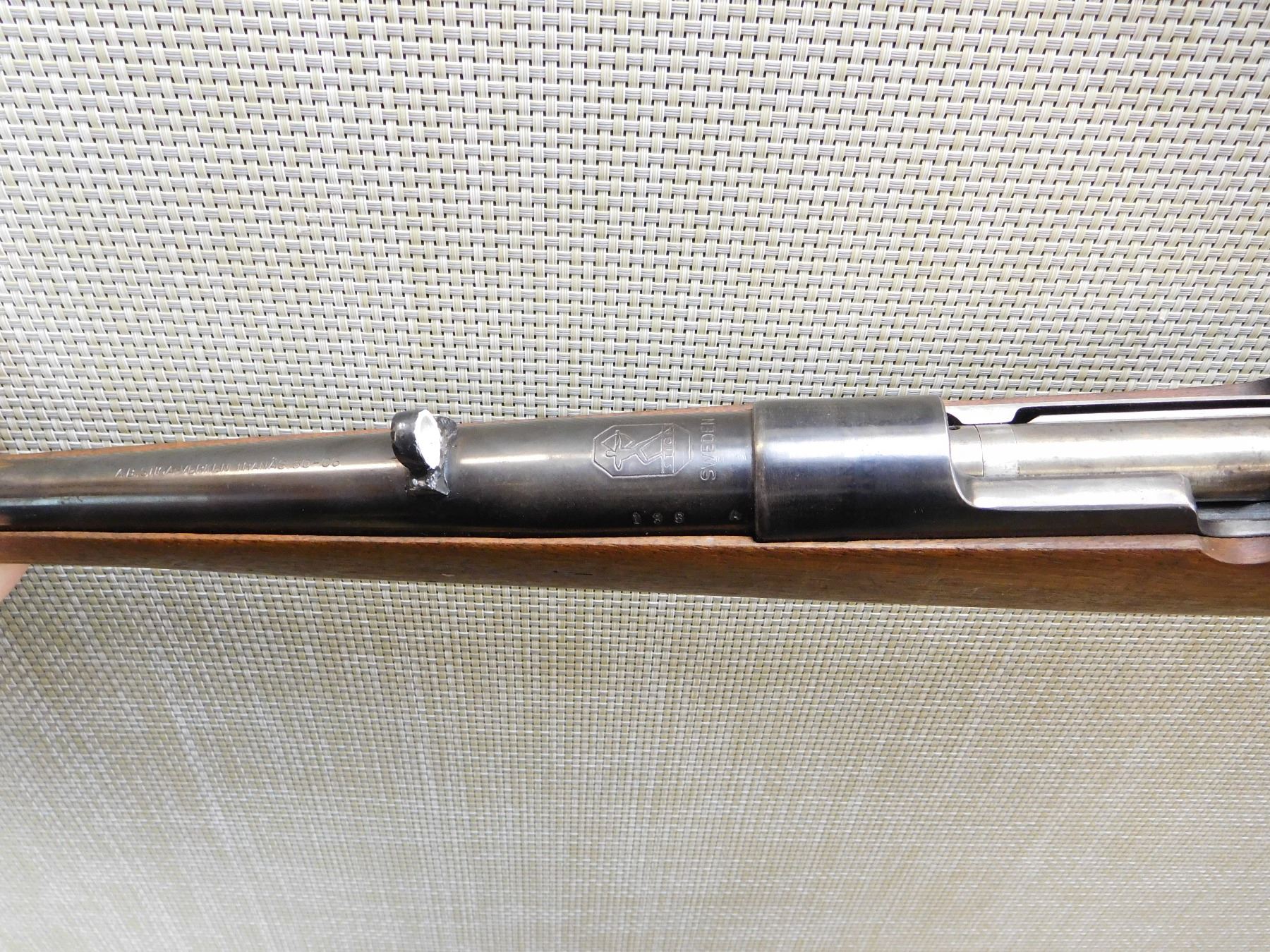 MARKED STIGA SWEDEN, MISSING FRONT SIGHT, MISSING THE BUTT PLATE, HAS A REPLACED CAP ON THE PISTOL GRIP, GOOD BORE, WHITE ON THE REAR SIGHT , ACTION: BOLT ACTION REPEATER RIFLE , BARREL LENGTH: 24" , STOCK # 7256 , SERIAL # 135 , CONDITION: 3/10 , CLASS: CANADIAN NON RESTRICTED CLASS