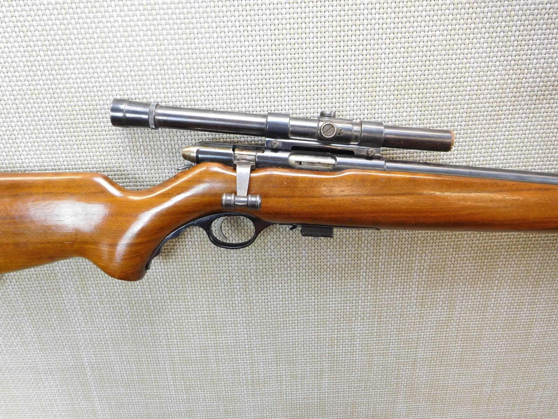 COMES WITH MAGAZINE, WEAVER B4 SCOPE, NO FRONT OR REAR SIGHT, BARREL HAS SIN OF PREVIOUS NUMBER ETCHED INTO IT, FEATURES THE UNIQUE T-BOLT COCKING KNOB, BORE IS VERY GOOD, MOSSBERG SLING SWIVEL ATTACHMENTS, STEEL BUTT PLATE WITH TRAP DOOR , ACTION: BOLT ACTION REPEATER RIFLE , BARREL LENGTH: 24" , STOCK # 7324 , SERIAL # N/A , CONDITION: 8/10 , CLASS: CANADIAN NON RESTRICTED CLASS