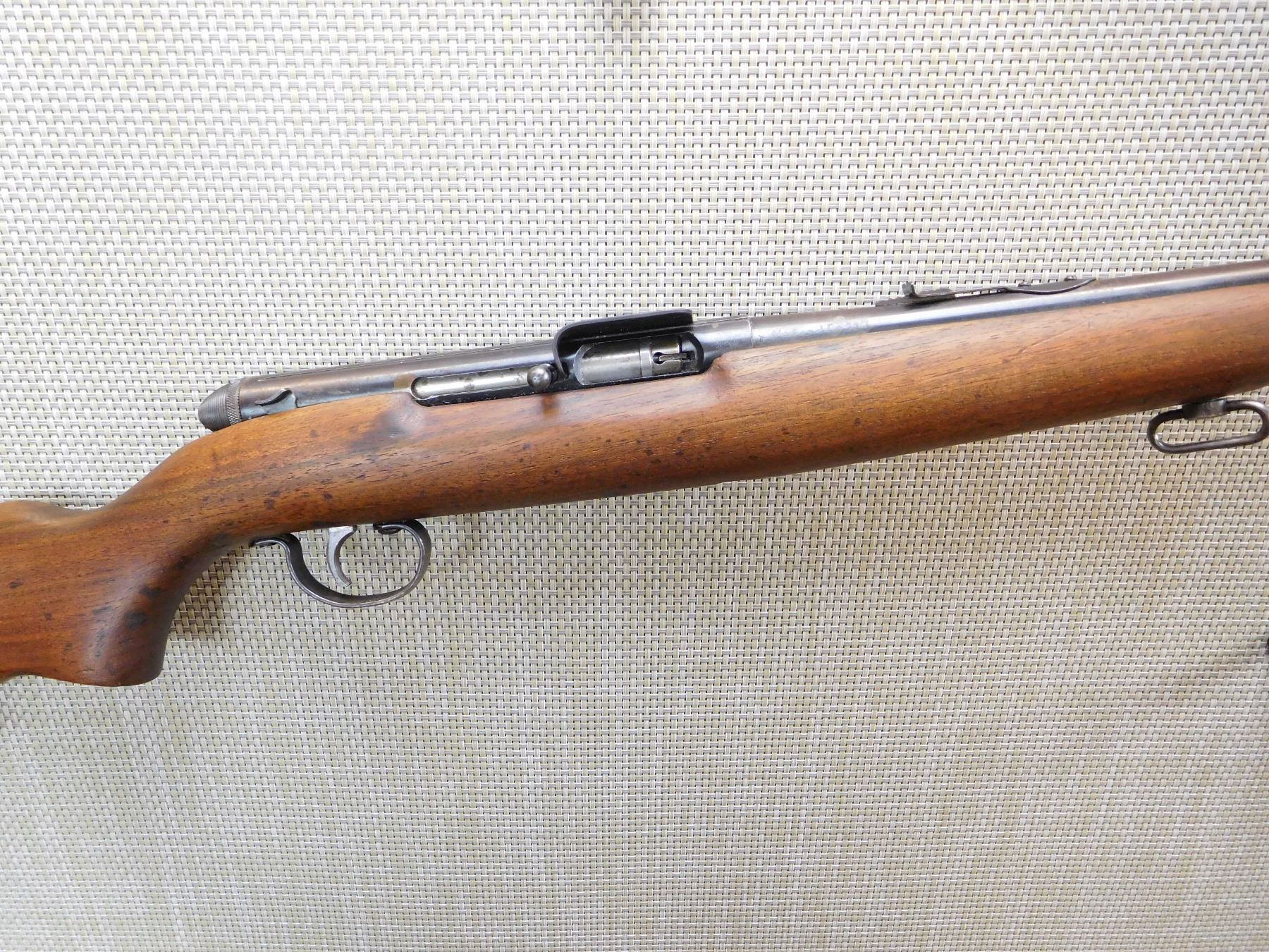 TUBE FED, ORIGINAL BRASS DEFLECTOR, DOVETAIL FRONT AND ADJUSTABLE REAR SIGHTS, EXCELLENT BORE, STOCK APPEARS TO HAVE BEEN REFINISHED, SLING SWIVEL STUDS, SOME EXTRA NUMBERS ARE ETCHED INTO THE BARREL NEAR THE BREACH POSSIBLY A SIN , ACTION: SEMI AUTOMATIC RIFLE , BARREL LENGTH: 24" , STOCK # 7330 , SERIAL # M350715033 , CONDITION: 7/10 , CLASS: CANADIAN NON RESTRICTED CLASS