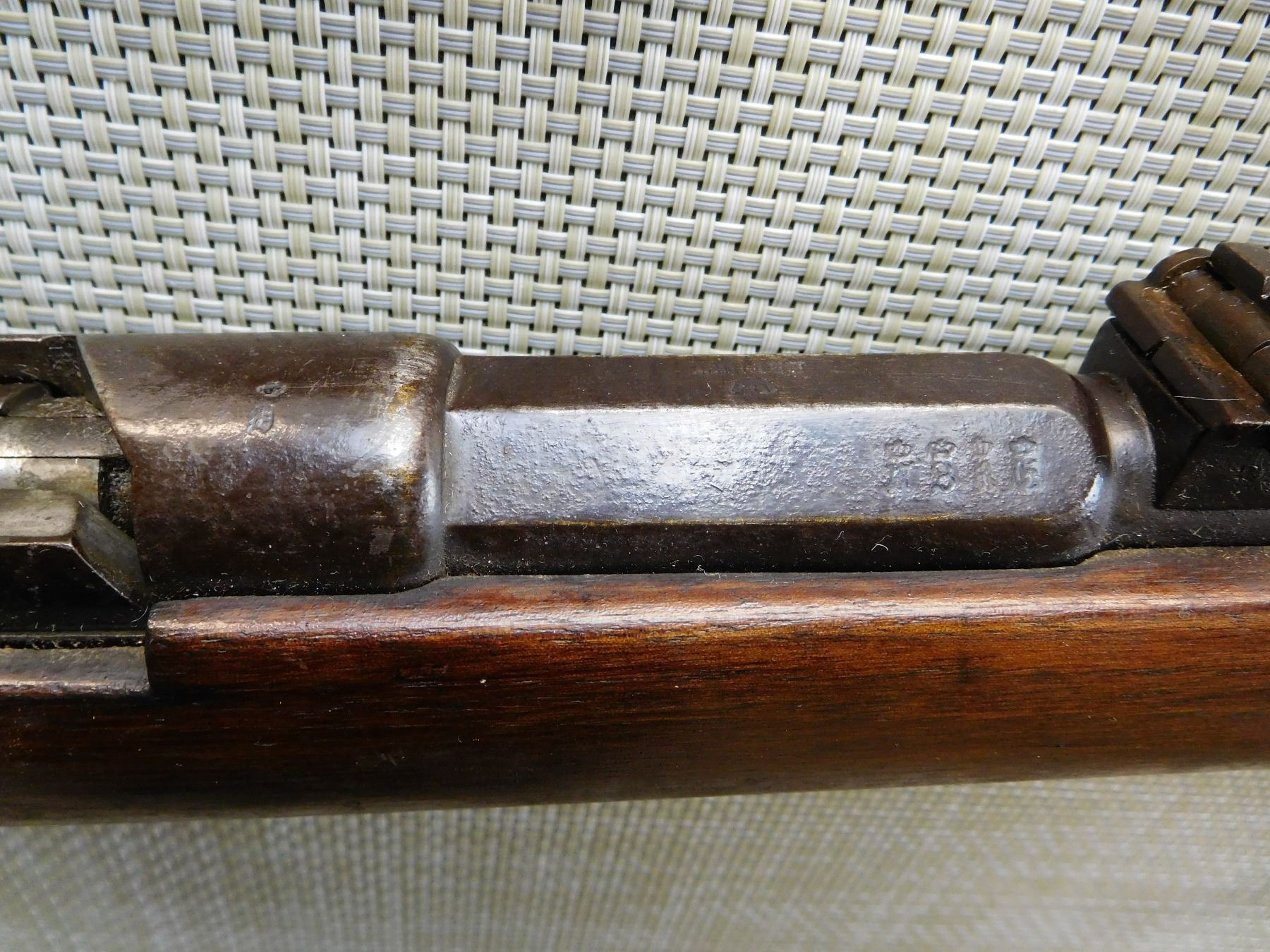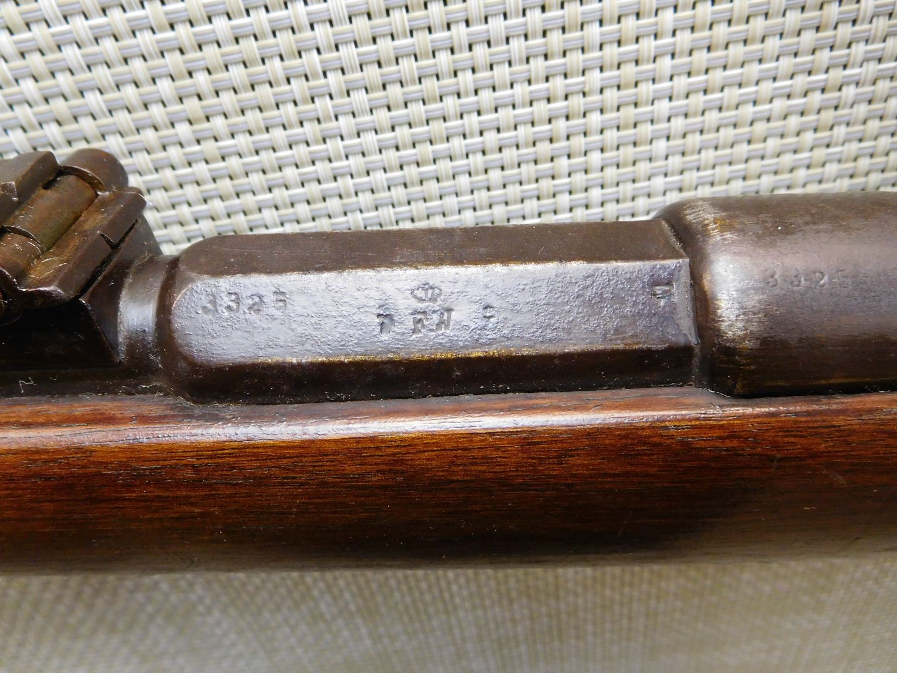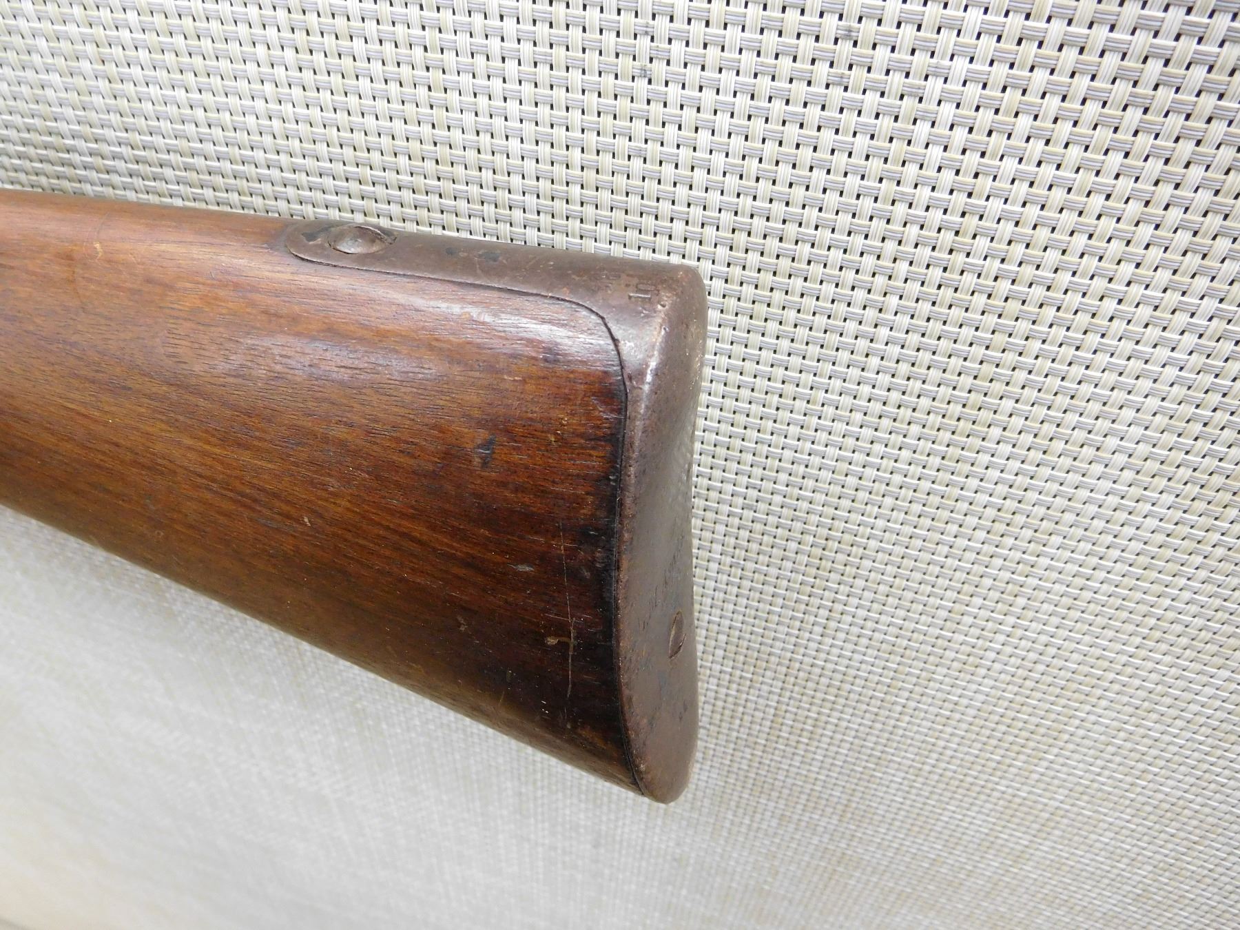 SPORTERIZED MILITARY STOCK, MADE IN 1887, MISSING THE MAGAZINE TUBE, REPLACED FRONT SIGHT, REAR SIGHT IS MISSING THE LADDER, BORE IS DARK , ACTION: BOLT ACTION RIFLE , BARREL LENGTH: 23" , STOCK # 7333 , SERIAL # 3525 , CONDITION: 3/10 , CLASS: CANADIAN NON RESTRICTED CLASS
