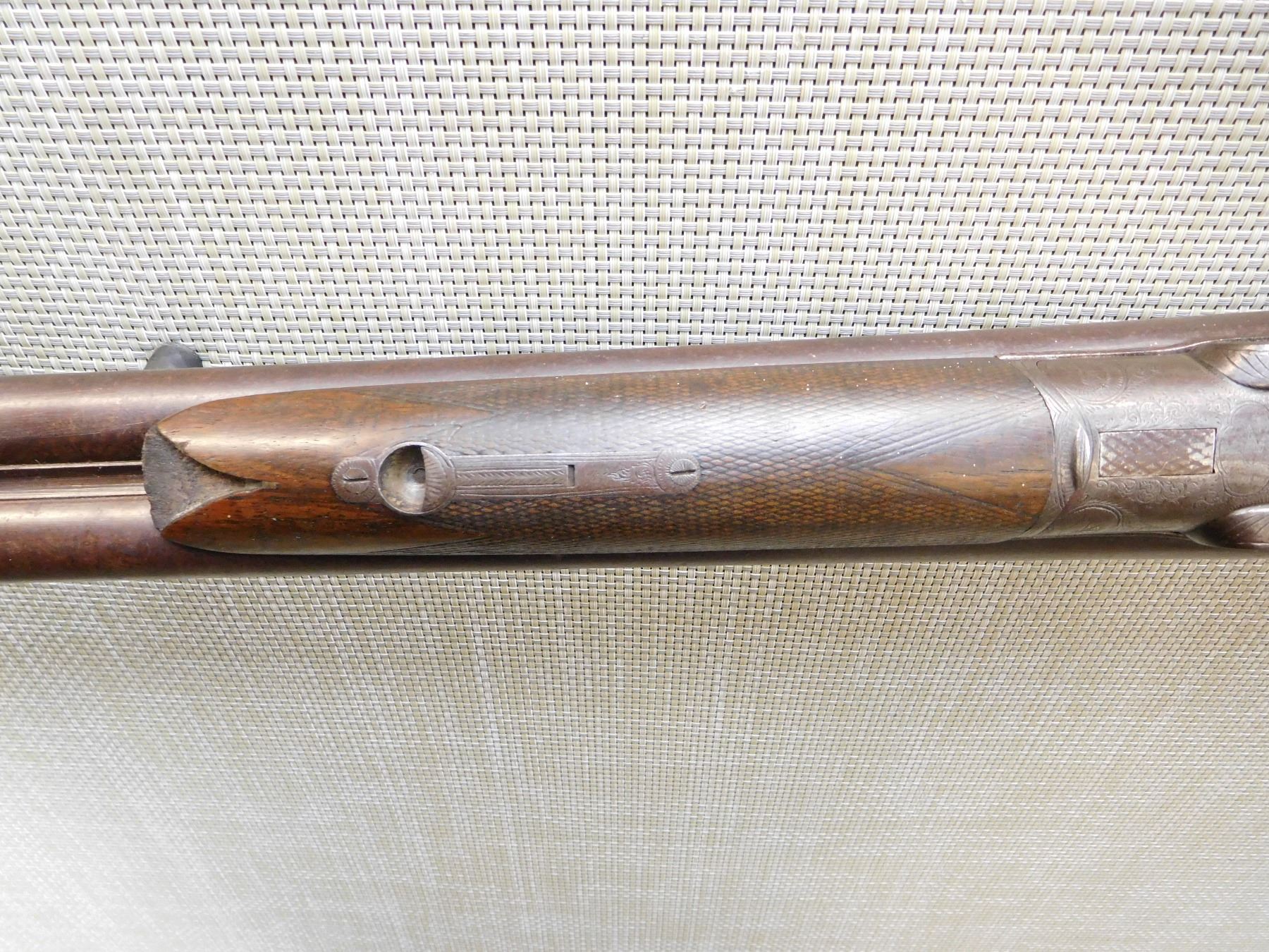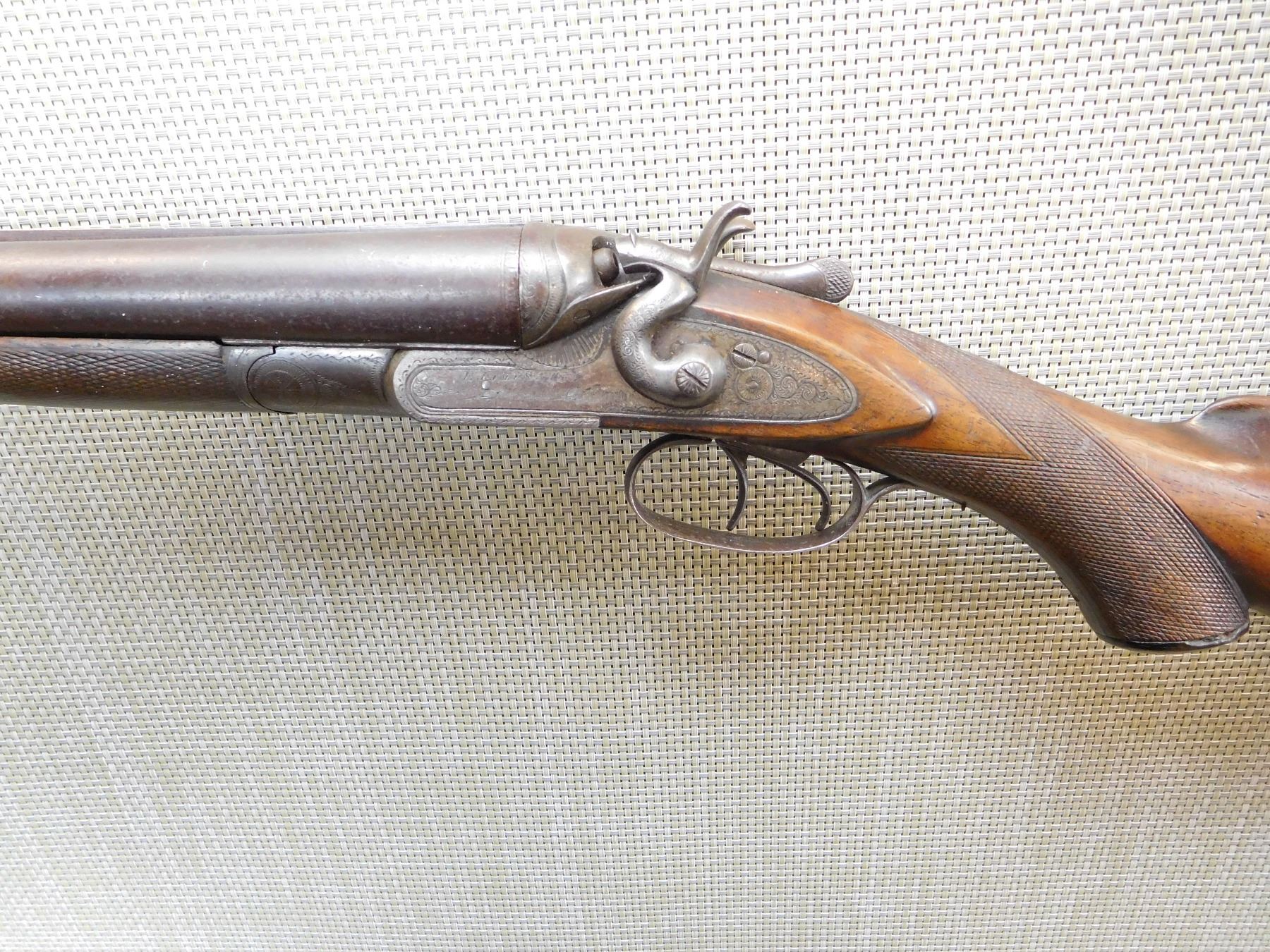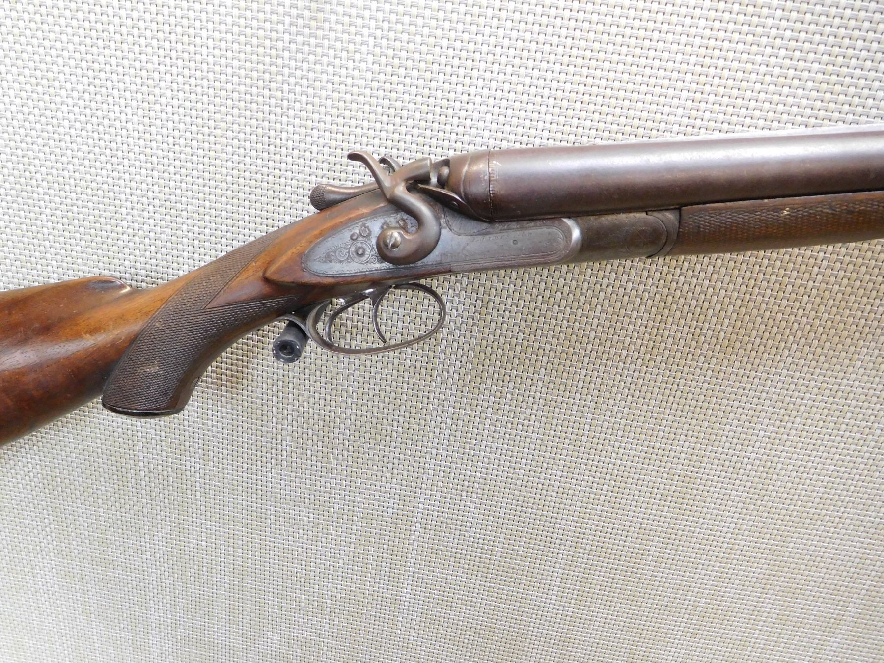 MADE IN BIRMINGHAM, FULL AND MODIFIED CHOKES, BARREL WITH DOLLS HEAD EXTENSION, MISSING THE FOREND INSERT, CHECKERED CAPPED PISTOL GRIP, HORN BUTT PLATE, BRASS CARTOOSH UNDER BUTT STOCK, BORES ARE FAIR , ACTION: SIDE BY SIDE DOUBLE HAMMERS, DOUBLE TRIGGERS , BARREL LENGTH: 29 1/2" , STOCK # 7340 , SERIAL # 17352 , CONDITION: 5/10 , CLASS: CANADIAN NON RESTRICTED CLASS