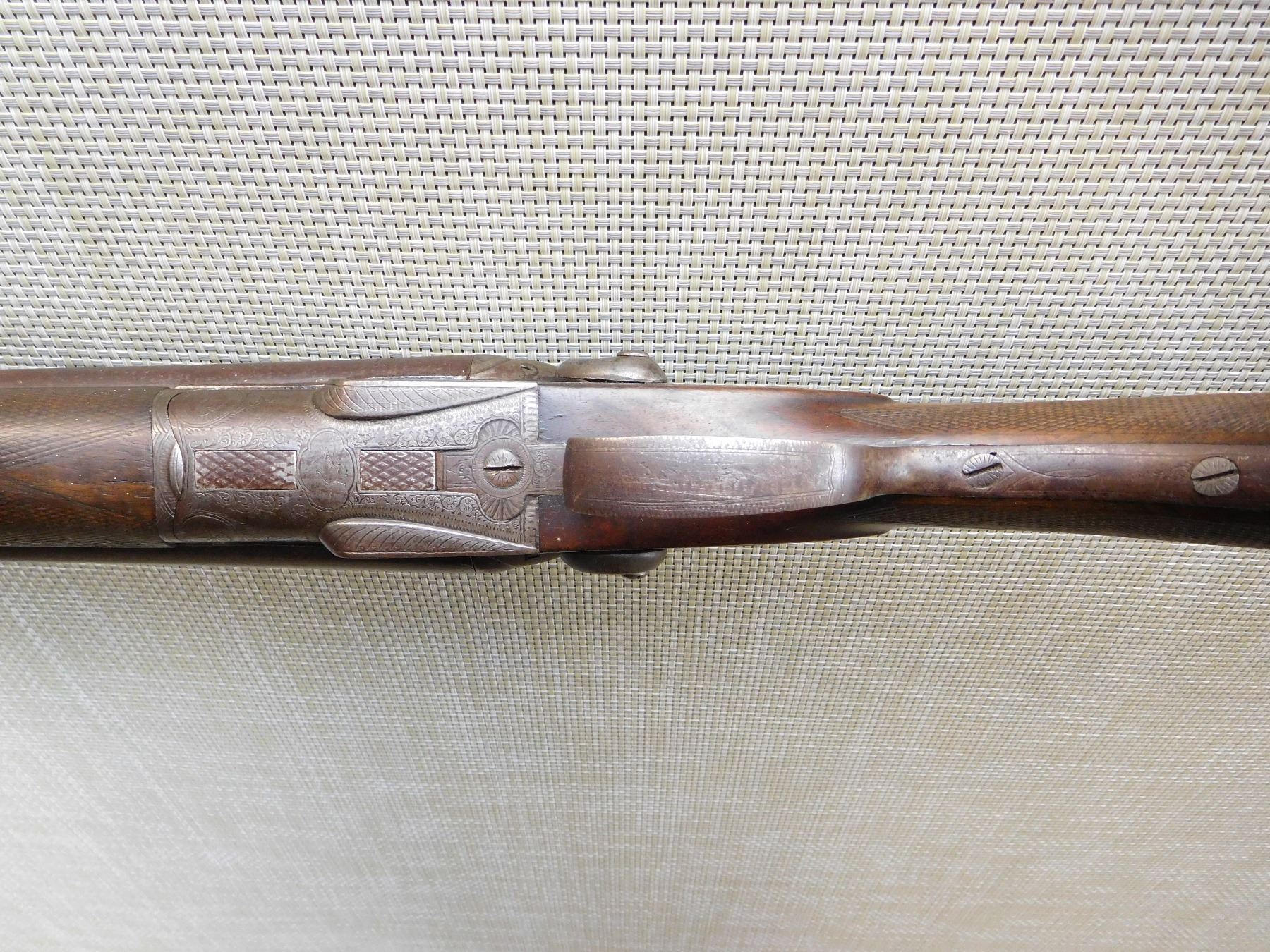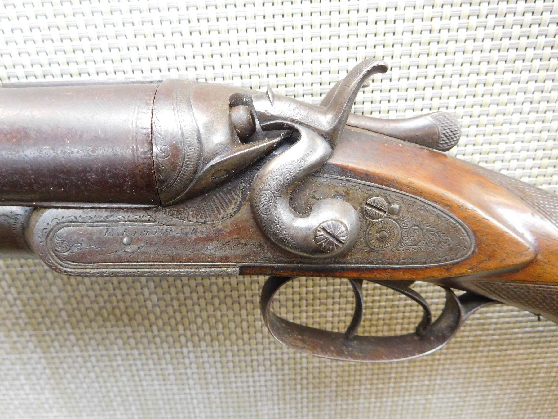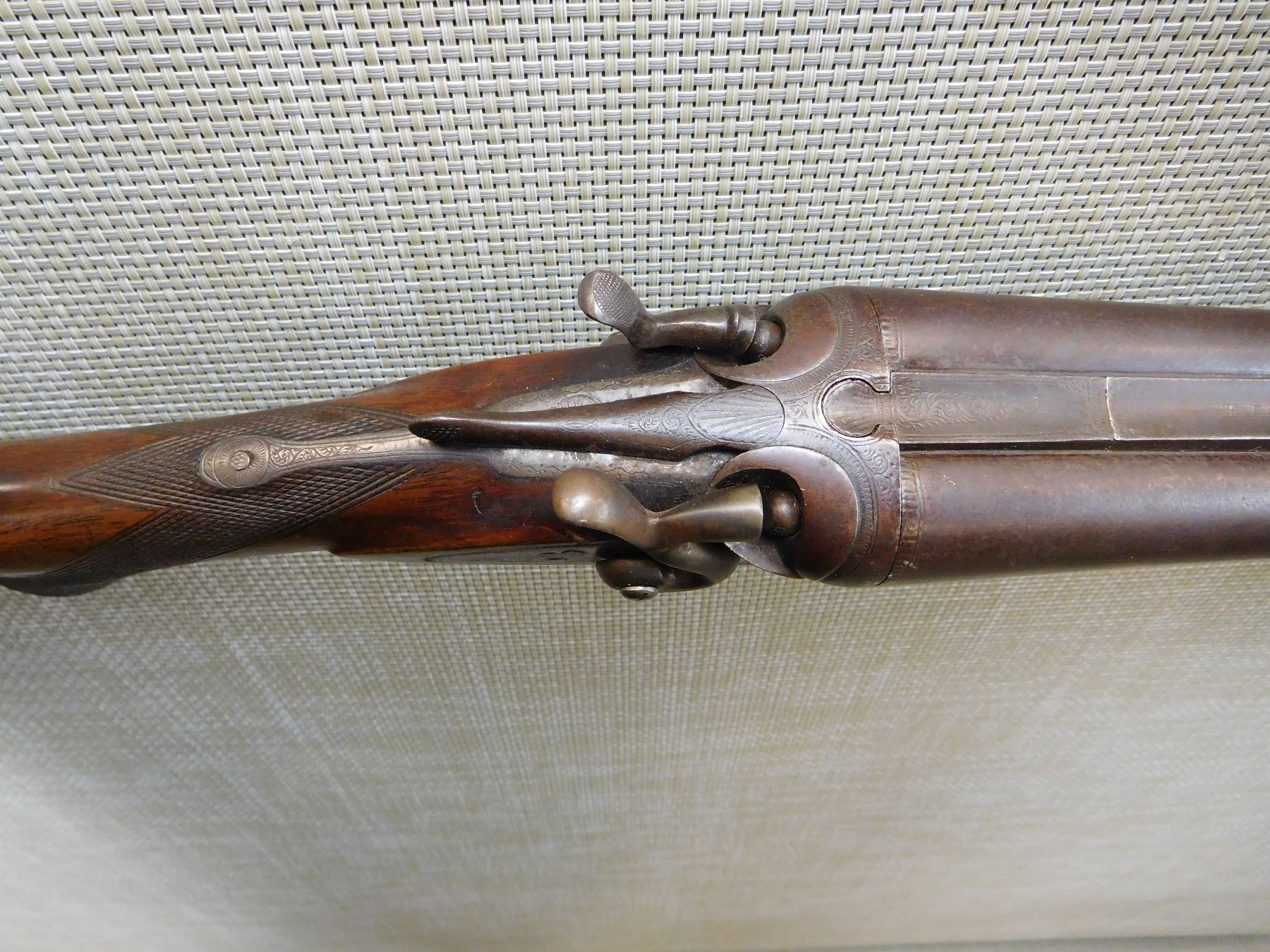 MADE IN BIRMINGHAM, FULL AND MODIFIED CHOKES, BARREL WITH DOLLS HEAD EXTENSION, MISSING THE FOREND INSERT, CHECKERED CAPPED PISTOL GRIP, HORN BUTT PLATE, BRASS CARTOOSH UNDER BUTT STOCK, BORES ARE FAIR , ACTION: SIDE BY SIDE DOUBLE HAMMERS, DOUBLE TRIGGERS , BARREL LENGTH: 29 1/2" , STOCK # 7340 , SERIAL # 17352 , CONDITION: 5/10 , CLASS: CANADIAN NON RESTRICTED CLASS