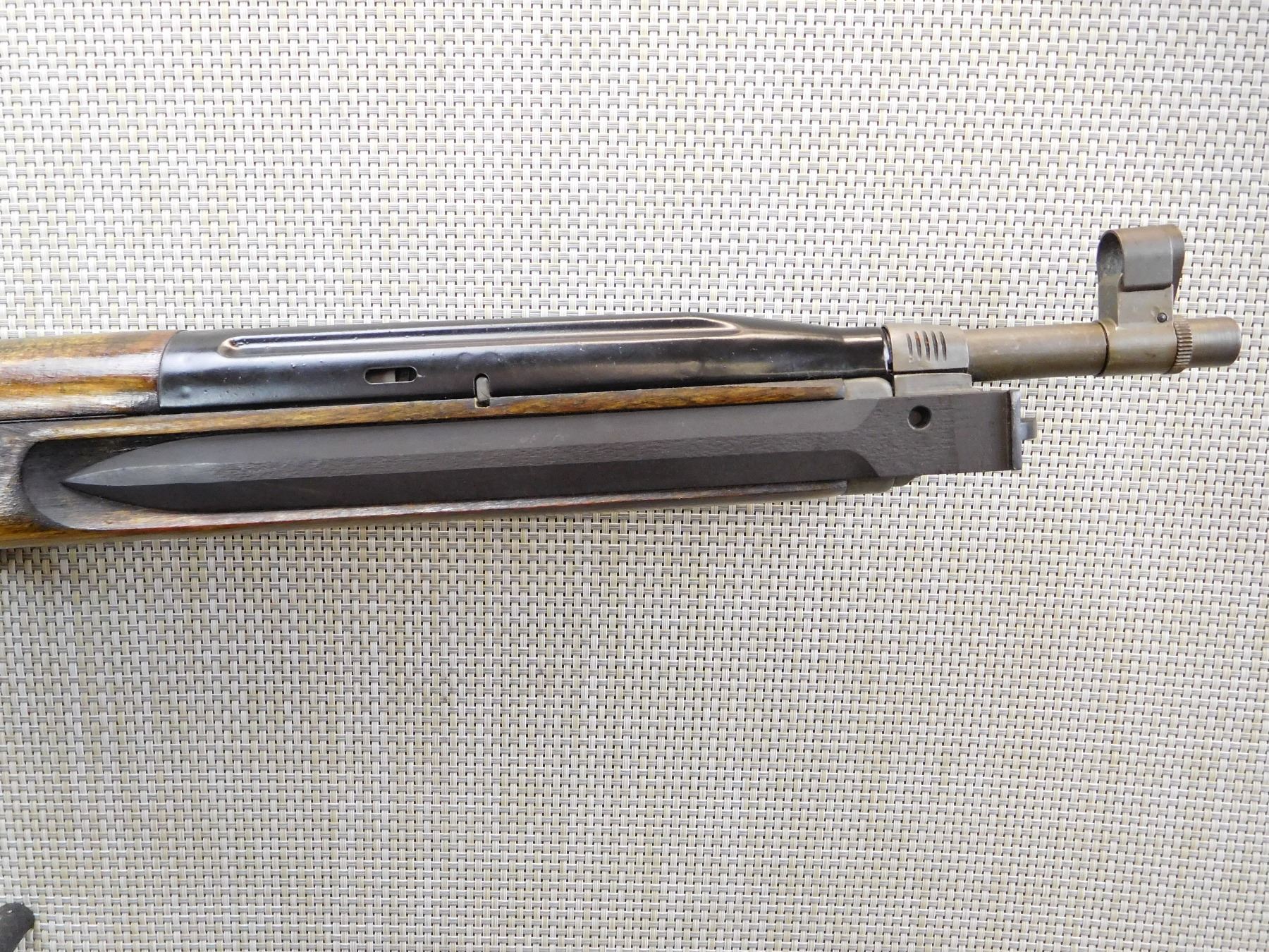 COMES WITH MAGAZINE, SIDE FOLDING BLADE BAYONET ATTACHED, MANUFACTURED IN 1958, HOODED FRONT SIGHT AND ADJUSTABLE REAR SIGHT, VERY GOOD BORE , ACTION: SEMI AUTOMATIC RIFLE , BARREL LENGTH: 20 1/2" , STOCK # 7379 , SERIAL # 65645 , CONDITION: 8/10 , CLASS: CANADIAN NON RESTRICTED CLASS
