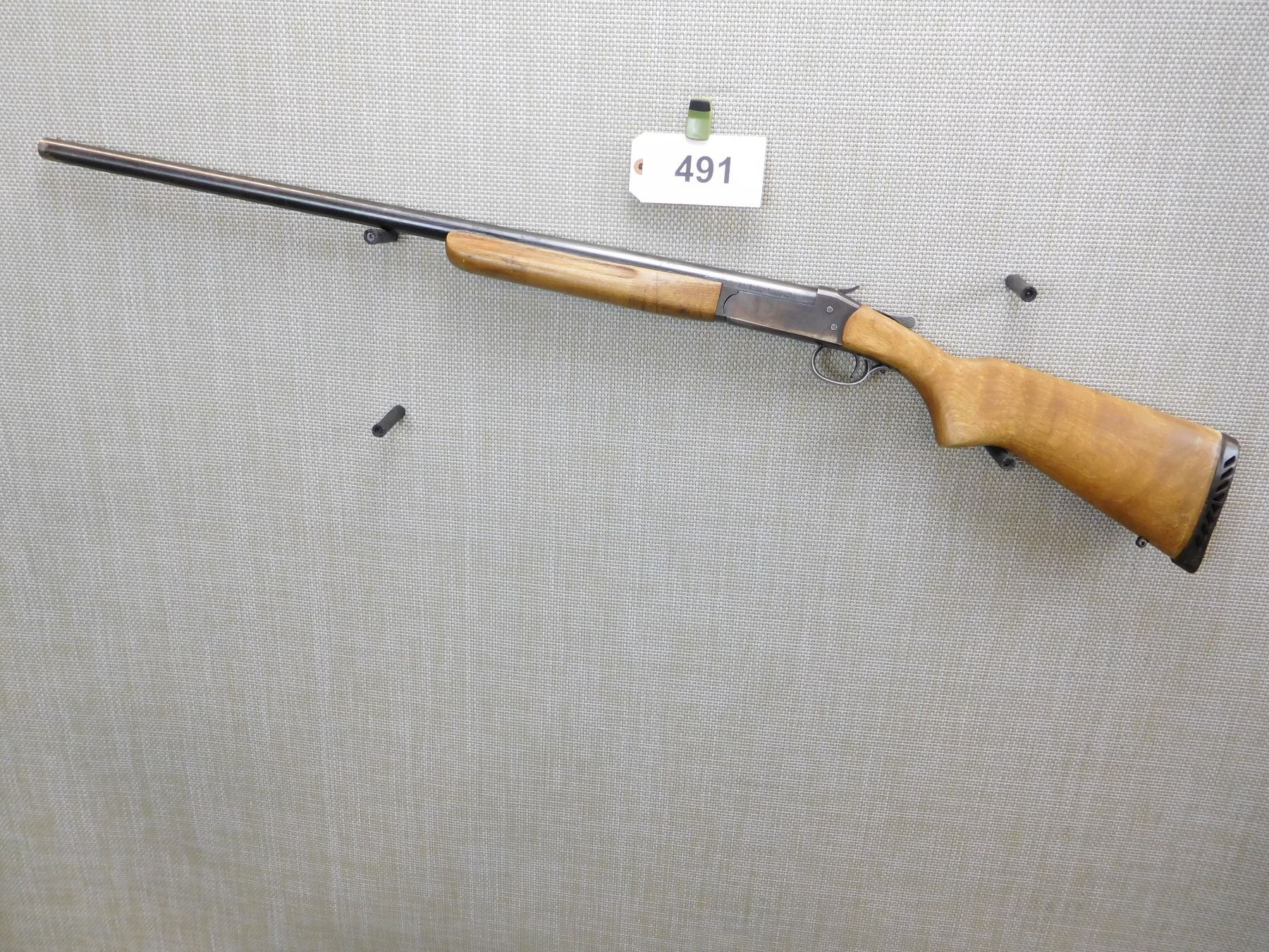 FIXED FULL CHOKE, HAS EJECTER, VERY GOOD BORE, REPLACED VENTED RECOIL PAD BY MOSSBERG, REPLACED TRIGGER GUARD SCREW, BEAD FRONT SIGHT, BLUEING IS MISSING FROM THE MUZZLE, SLING SWIVEL STUD , ACTION: SINGLE SHOT BREAK ACTION SHOTGUN , BARREL LENGTH: 30" , STOCK # 7383 , SERIAL # 1053996 , CONDITION: 5/10 , CLASS: CANADIAN NON RESTRICTED CLASS