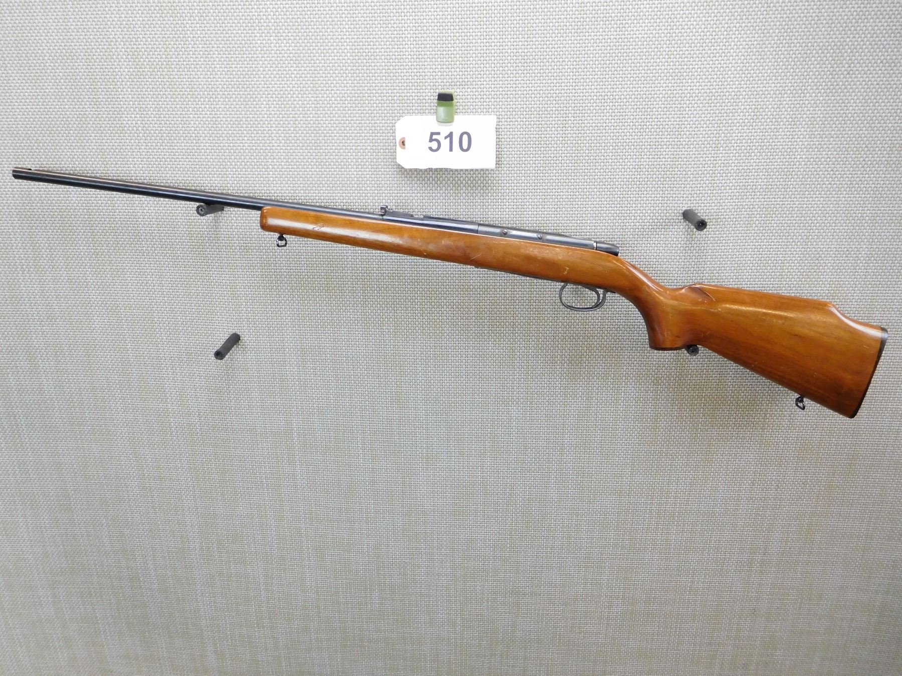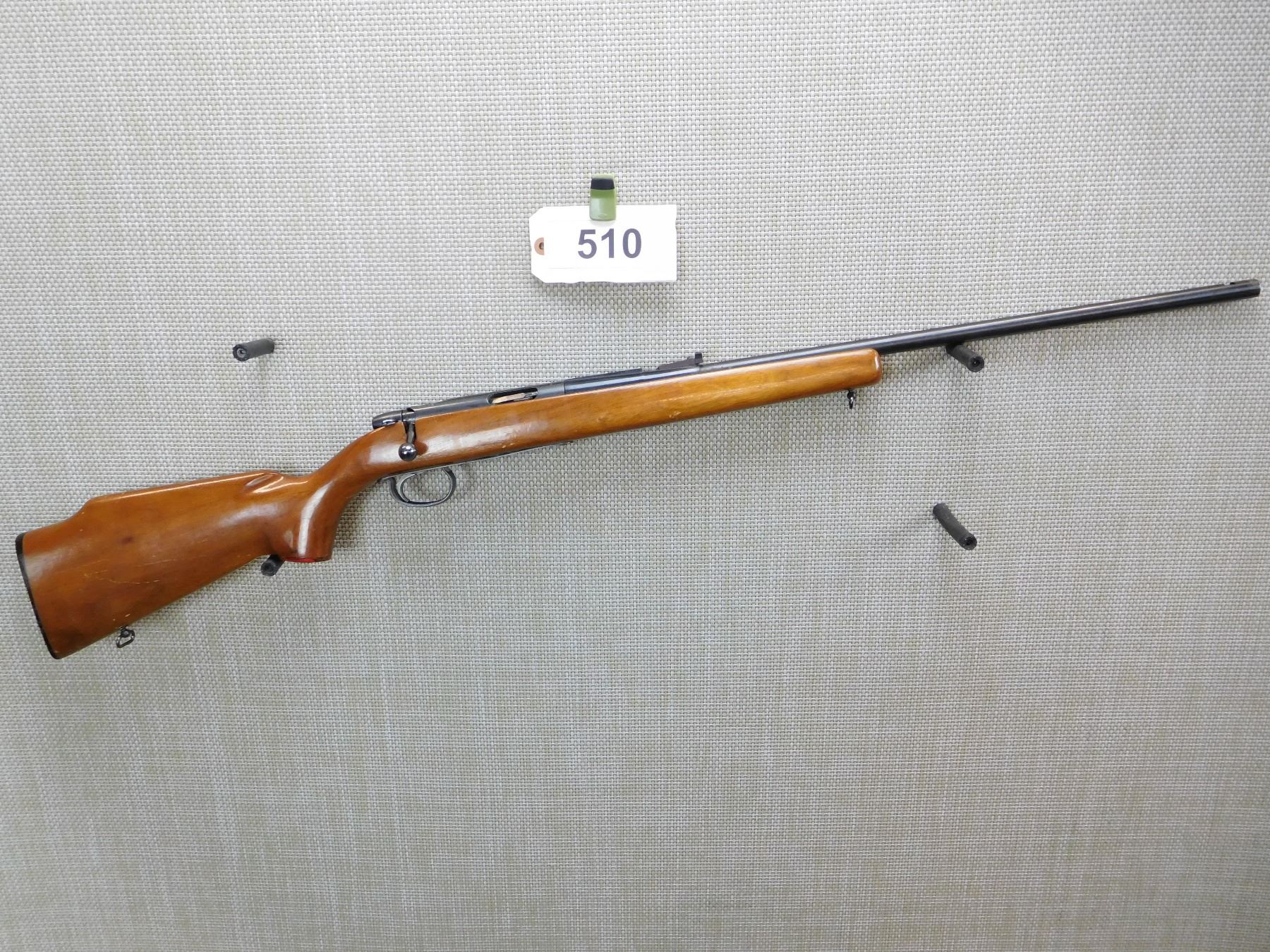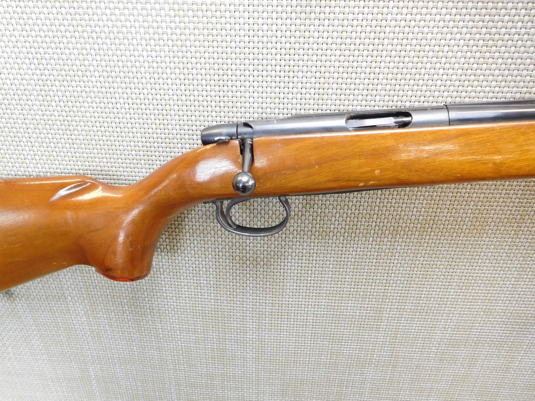 DOES NOT COME WITH THE MAGAZINE, MISSING THE FRONT SIGHT, ADJUSTABLE REAR SIGHT, DARK BORE, SLING SWIVEL STUDS, MONTE CARLO STOCK WITH HARD RUBBER BUTT PLATE , ACTION: BOLT ACTION RIFLE , BARREL LENGTH: 24" , STOCK # 7402 , SERIAL # 1099285 , CONDITION: 5/10 , CLASS: CANADIAN NON RESTRICTED CLASS