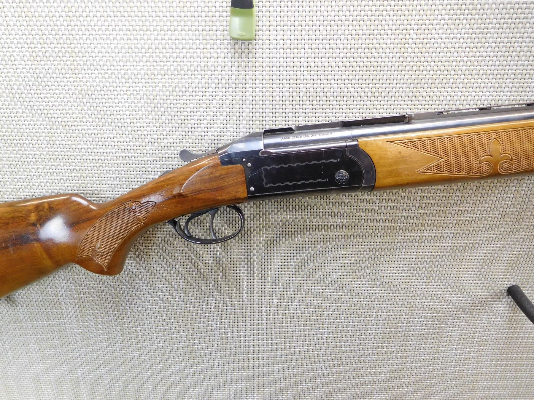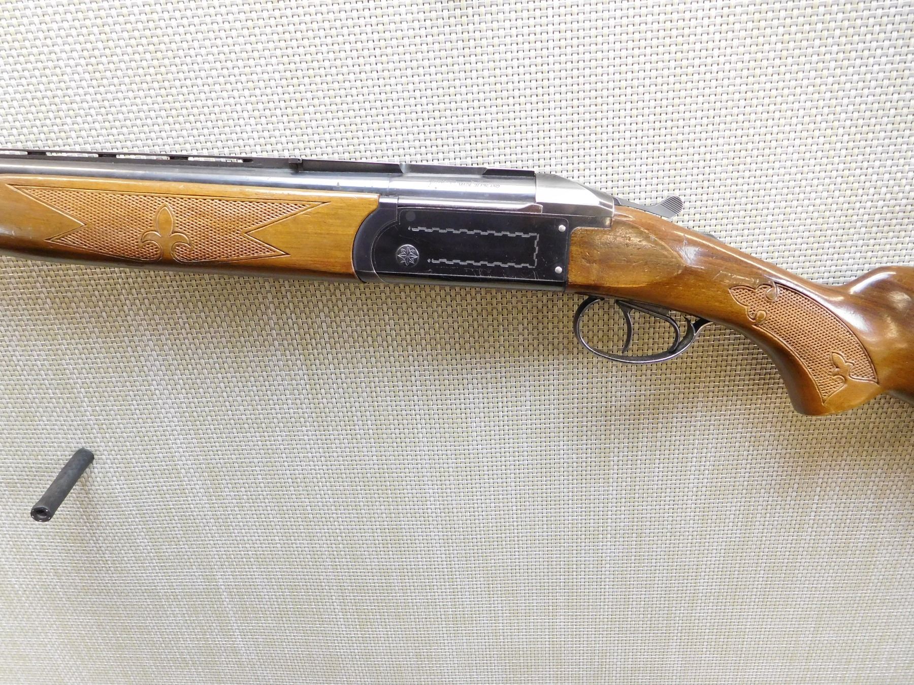 BLADE FRONT AND FLIP UP REAR SIGHT, CHECKERED FOREND AND SEMI PISTOL GRIP BUTT STOCK WITH PLASTIC BUTT PLATE, SLING SWIVEL STUDS, VERY GOOD BORES , ACTION: OVER UNDER MULTI BARREL , BARREL LENGTH: 23 1/2" , STOCK # 7418 , SERIAL # 3340 , CONDITION: 8/10 , CLASS: CANADIAN NON RESTRICTED CLASS