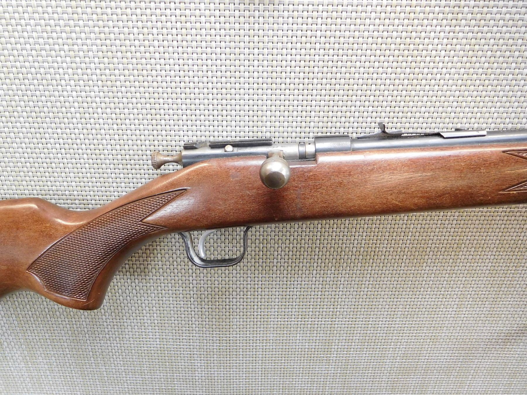 ADJUSTABLE METAL SIGHTS, HARD RUBBER BUTT PLATE, CHECKERED PISTOL GRIP AND FORESTOCK, SLING LOOPS , ACTION: BOLT ACTION REPEATER RIFLE , BARREL LENGTH: 560MM , STOCK # 7447 , SERIAL # CG075965 , CONDITION: 7/10 , CLASS: CANADIAN NON RESTRICTED CLASS