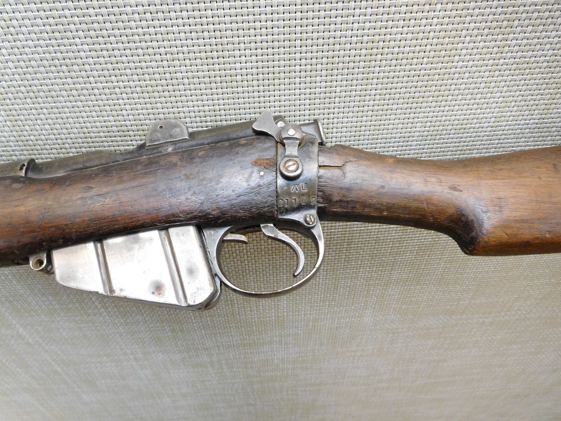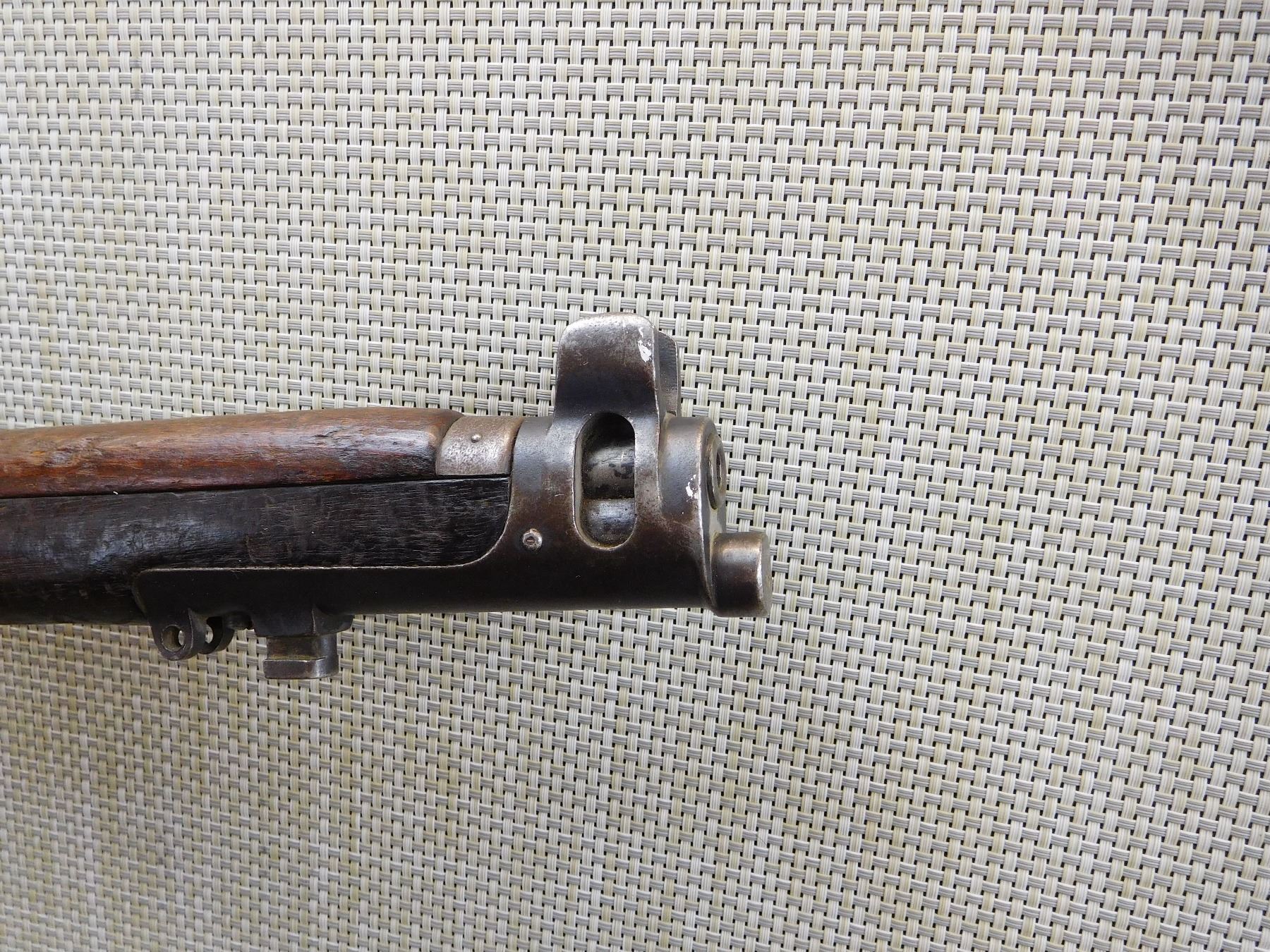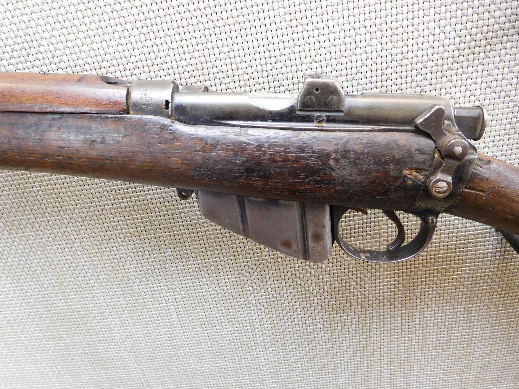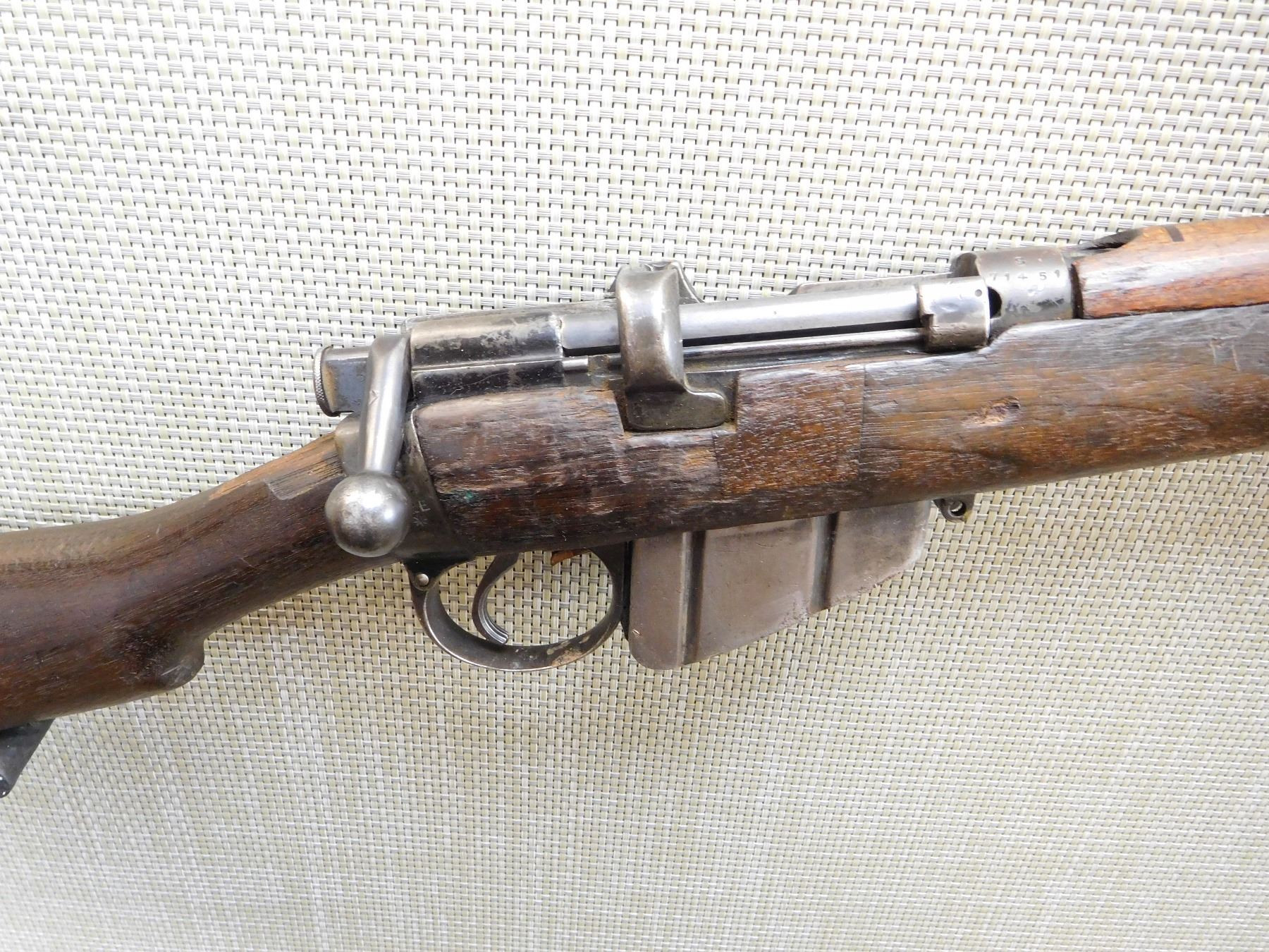 COMES WITH MAGAZINE, ORIGINAL MILITARY SIGHTS, BUTT STOCK IS BROKEN CHIPPED AND CRACKED, WINDAGE GAUGE IS MISSING , MISMATCHED TOP AND BOTTOM WOOD, BORE SHOES GOOD RIFLING WITH MINOR PITTING, SLING LOOPS, NUMBERS DON'T MATCH , ACTION: BOLT ACTION RIFLE , BARREL LENGTH: 25 1/4" , STOCK # 7450 , SERIAL # S71451 , CONDITION: 5/10 , CLASS: CANADIAN NON RESTRICTED CLASS