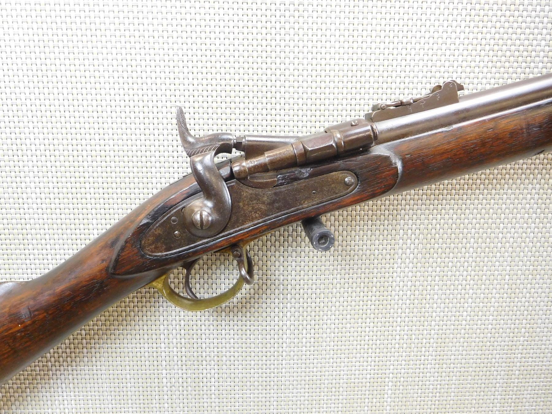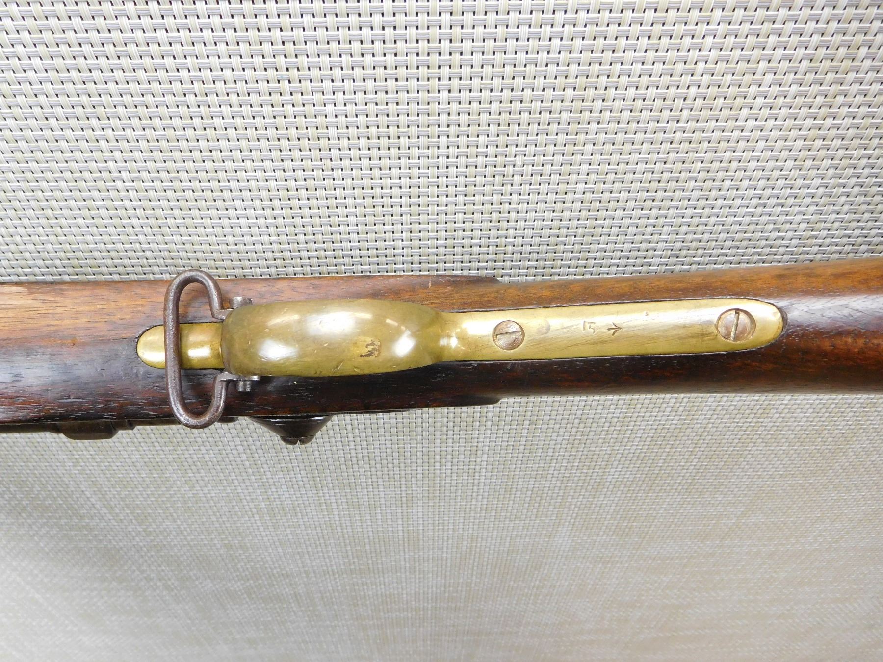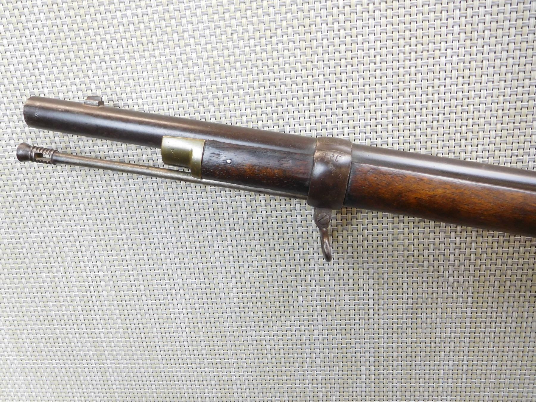 ORIGINAL RAM ROD, GOOD BORE, FIXED FRONT AND FULLY ADJUSTABLE REAR, BRASS FURNITURE, NAPALESE MARKINGS , ACTION: SINGLE SHOT , BARREL LENGTH: 36" , , , CONDITION: ANTIQUE 6/10 , CLASS: CANADIAN ANTIQUE CLASS