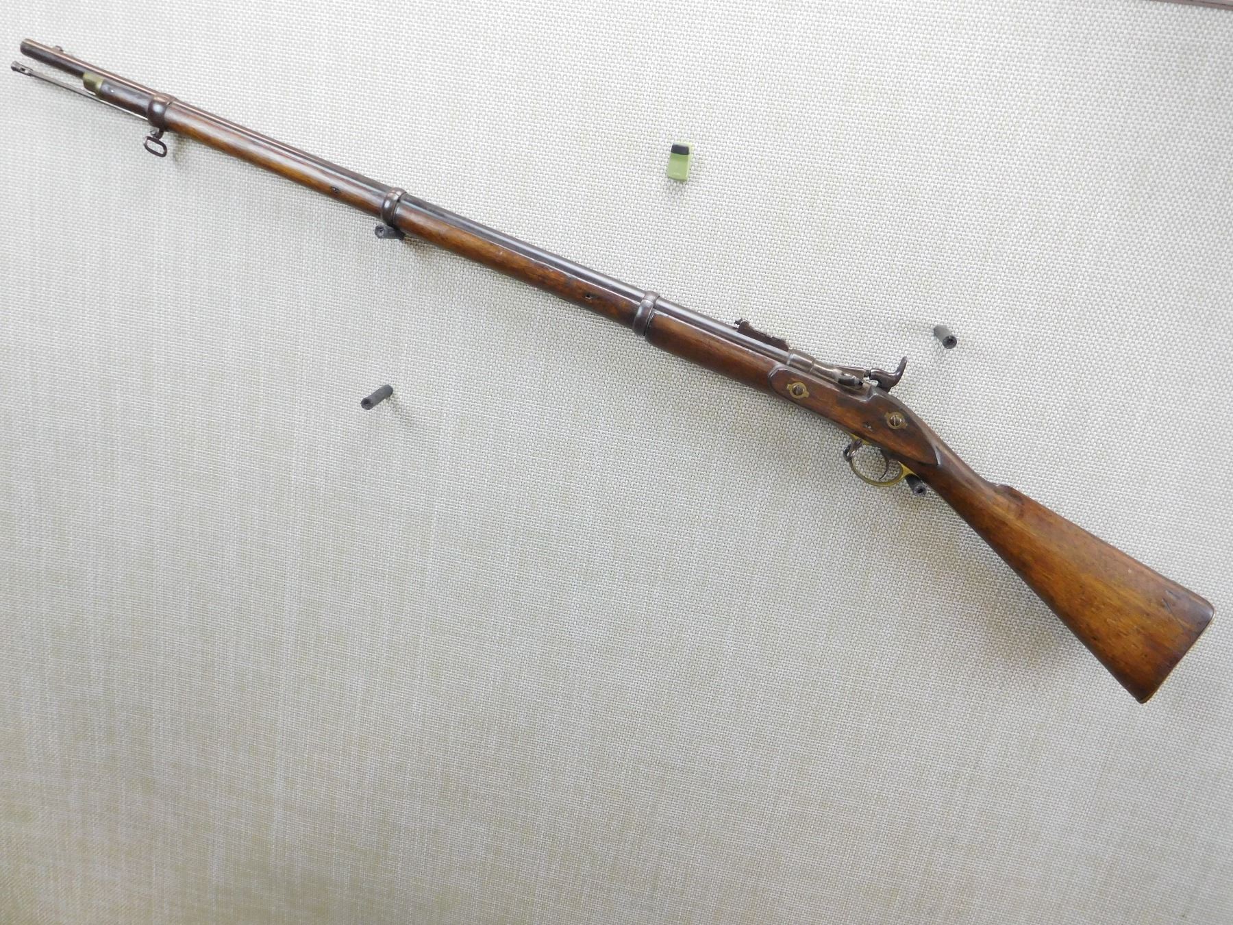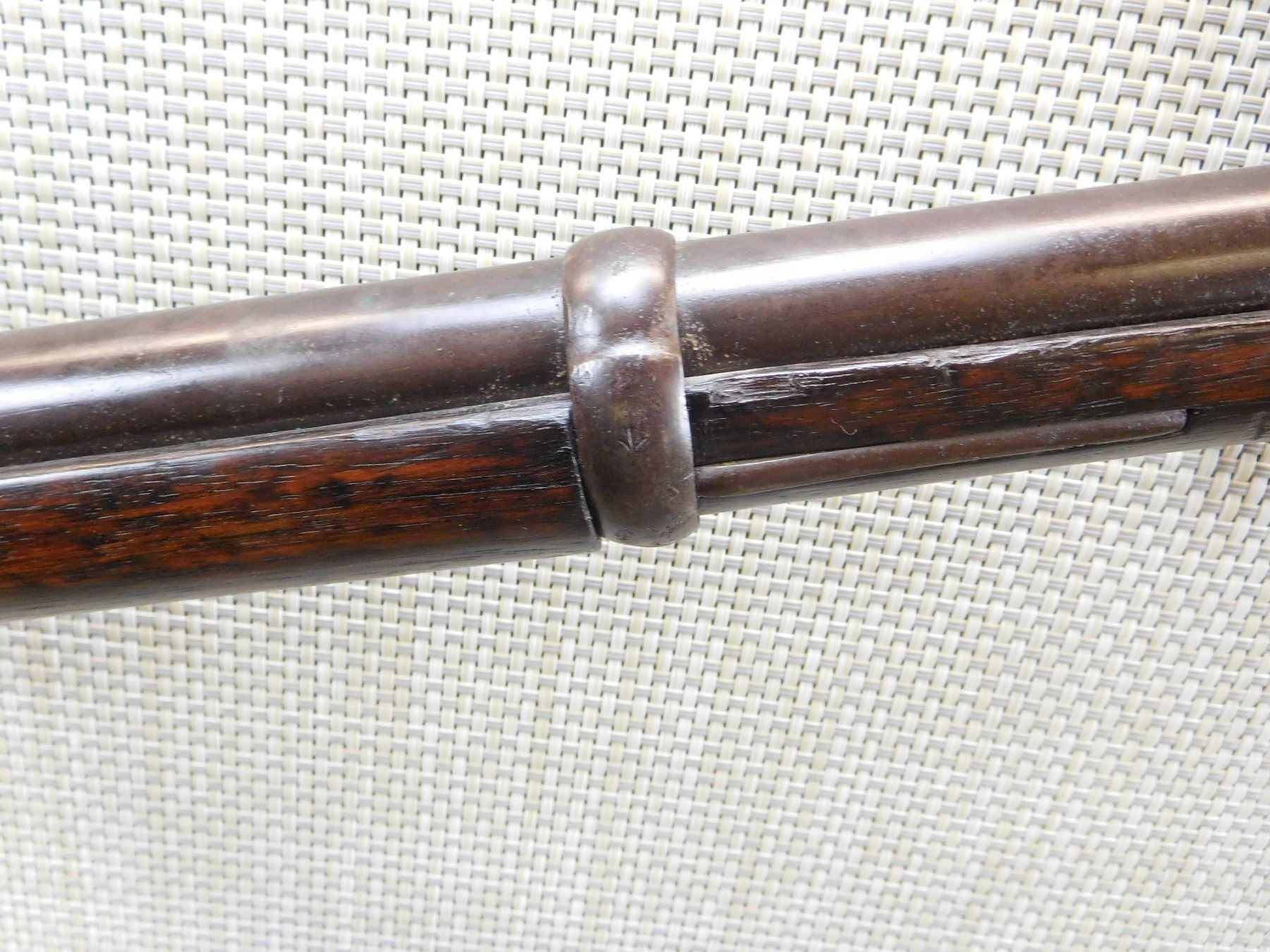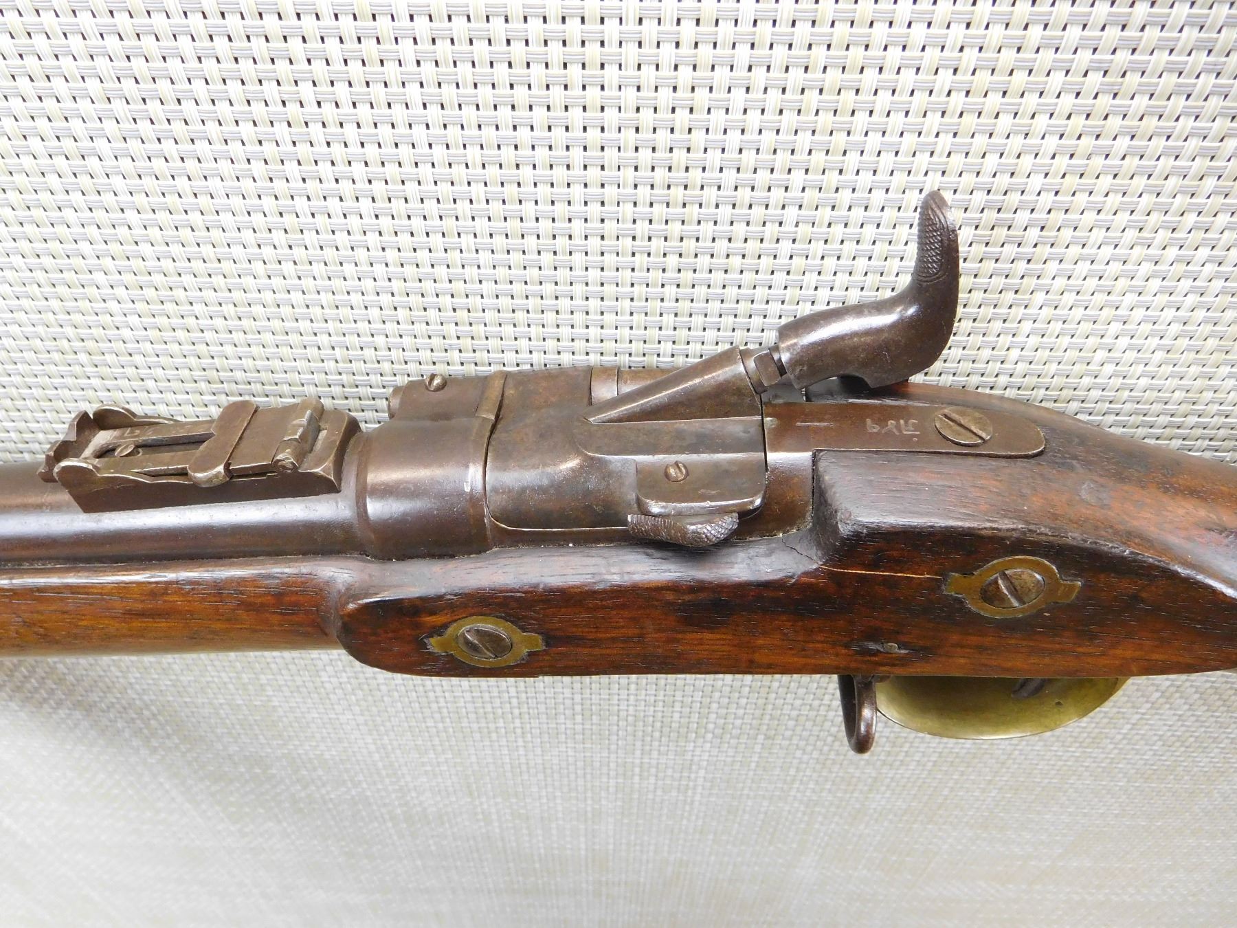 ORIGINAL RAM ROD, GOOD BORE, FIXED FRONT AND FULLY ADJUSTABLE REAR, BRASS FURNITURE, NAPALESE MARKINGS , ACTION: SINGLE SHOT , BARREL LENGTH: 36" , , , CONDITION: ANTIQUE 6/10 , CLASS: CANADIAN ANTIQUE CLASS