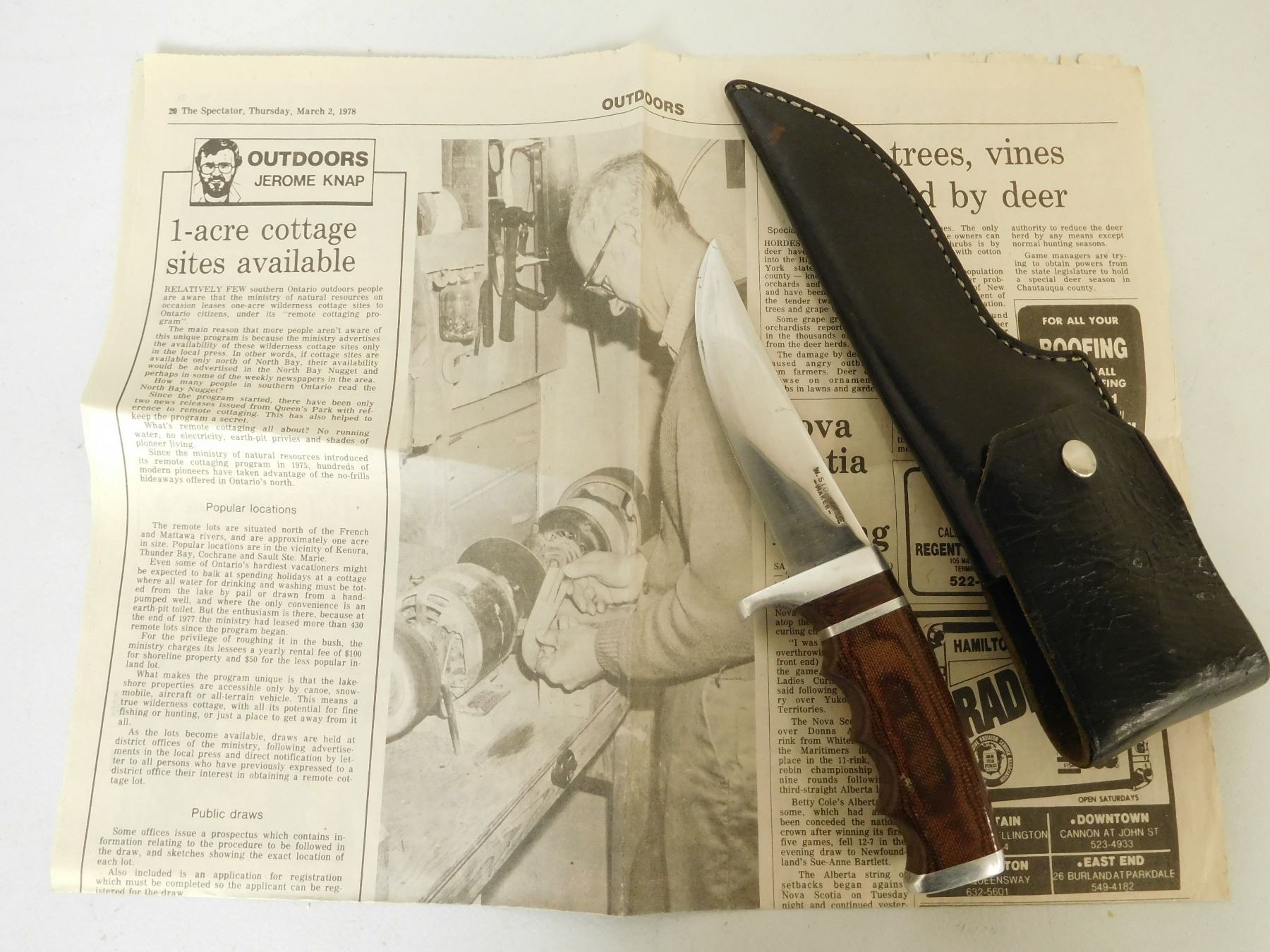 WITH BLACK LEATHER SHEATH, INCLUDES NEWSPAPER ARTICLES