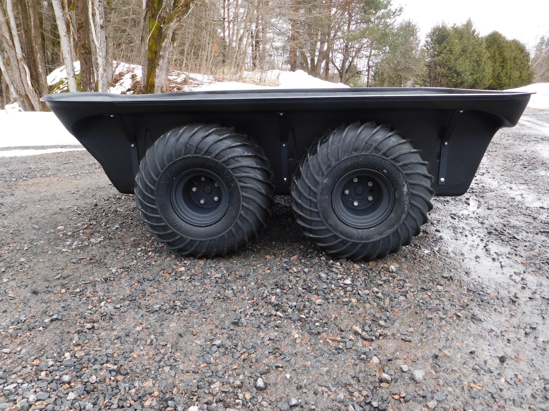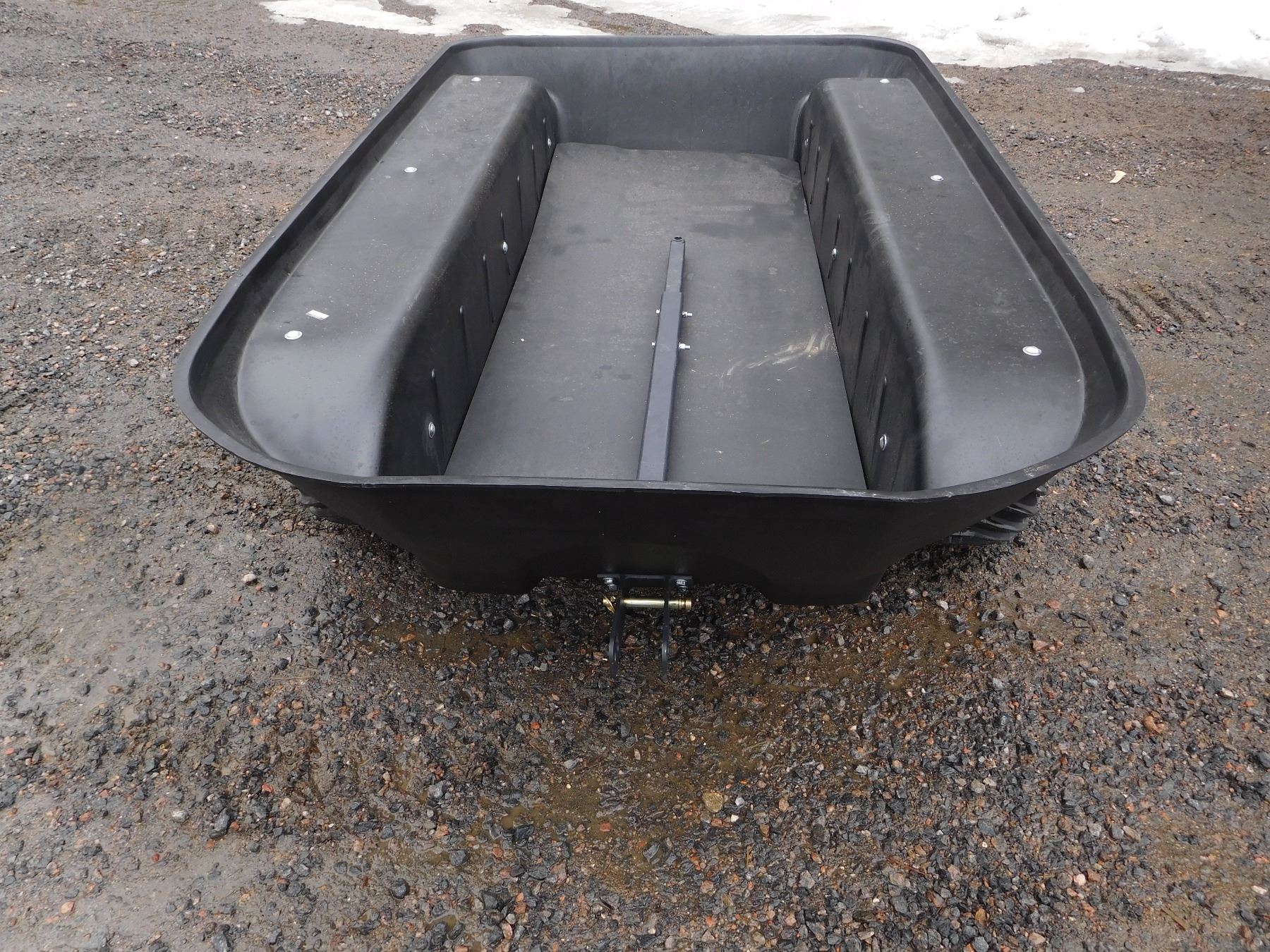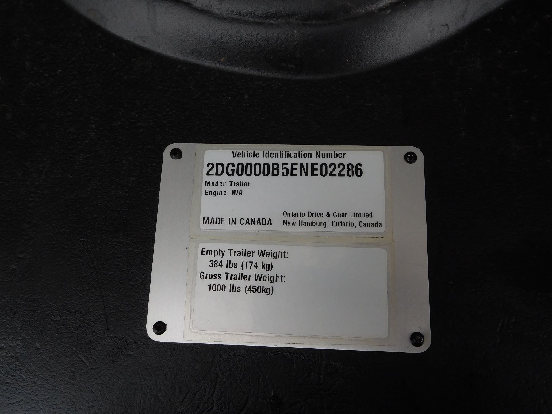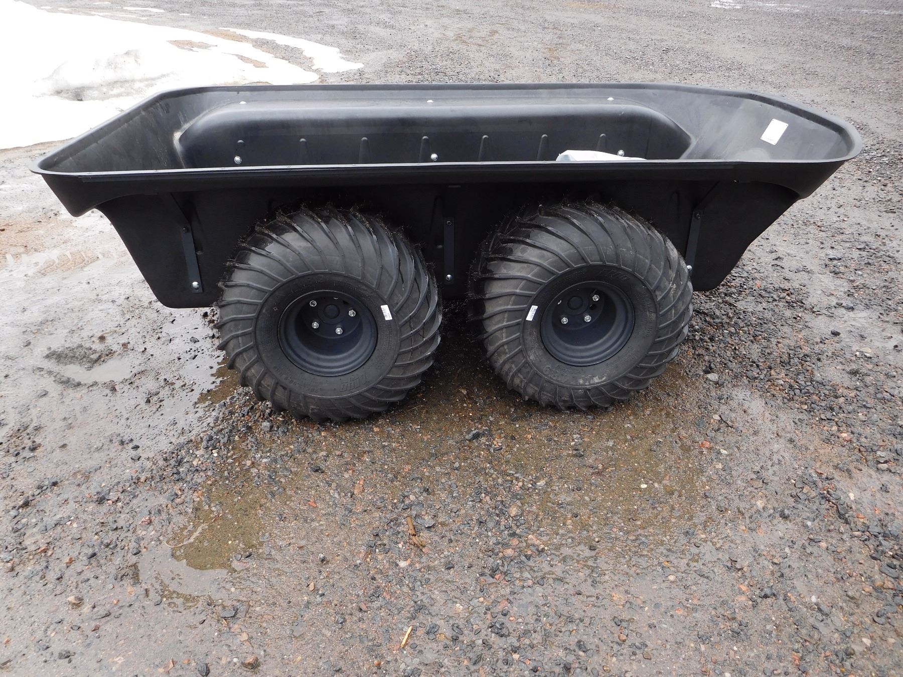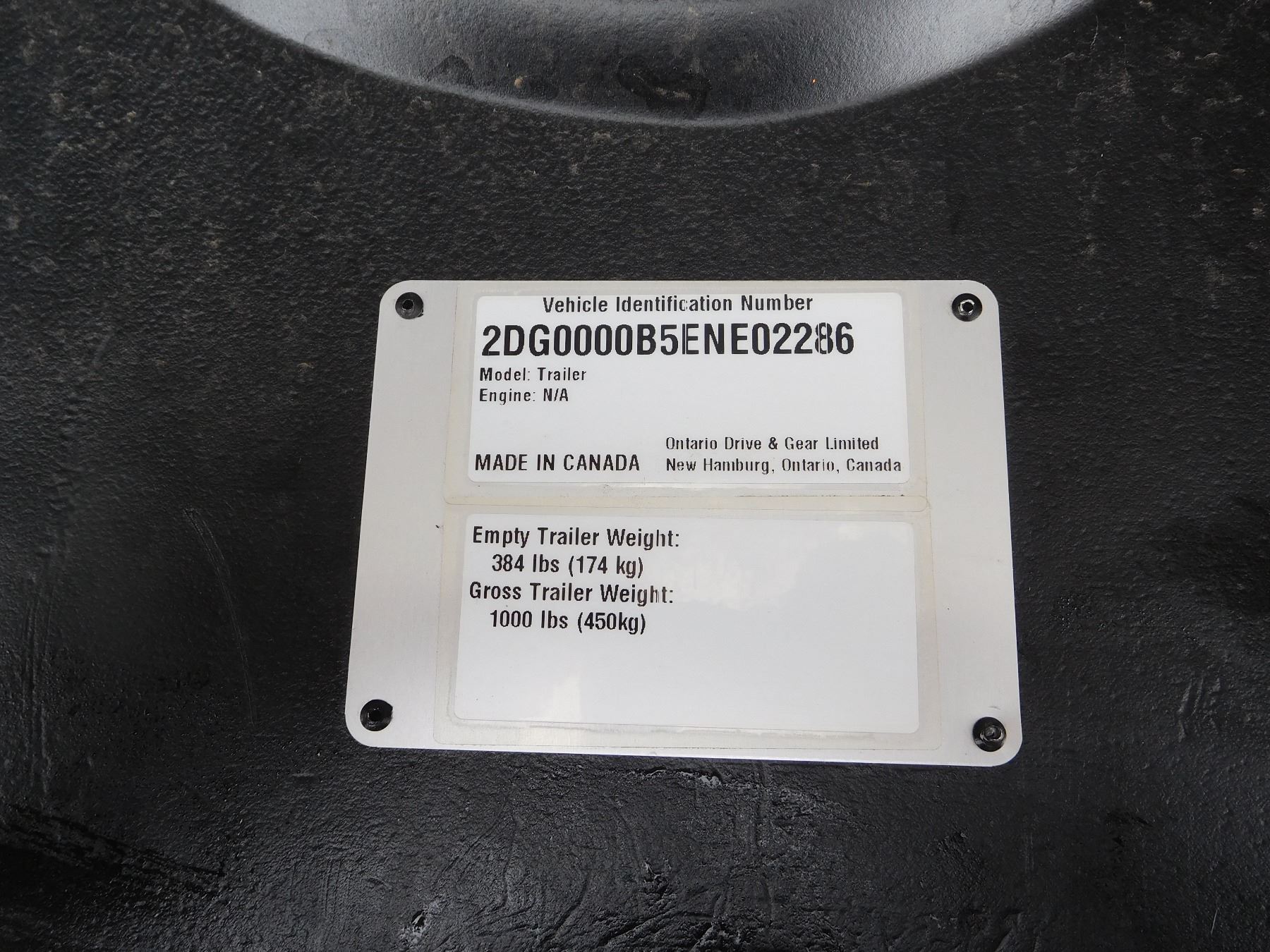 THIS OEM ARGO TRAILER IS AMPHIBIOUS AND DESIGNED TO BE TOWED BEHIND AN ARGO OR OTHER UTILITY VEHICLE, 90 INCHES LONG, 32" INTERIOR FOR CARGO PLUS SEATS ON EITHER SIDE, TANDEM SUSPENSION IS WATERPROOF AND SERVICEABLE UNDER THE REMOVABLE FLOOR. MANUFACTURED IN NEW HAMBURG ONTARIO BY ONTARIO DRIVE AND GEAR, AS NEW CONDITION, EMPTY WEIGHT 384 LBS., GROSS WEIGHT 1000 LBS., NO SHIPPING