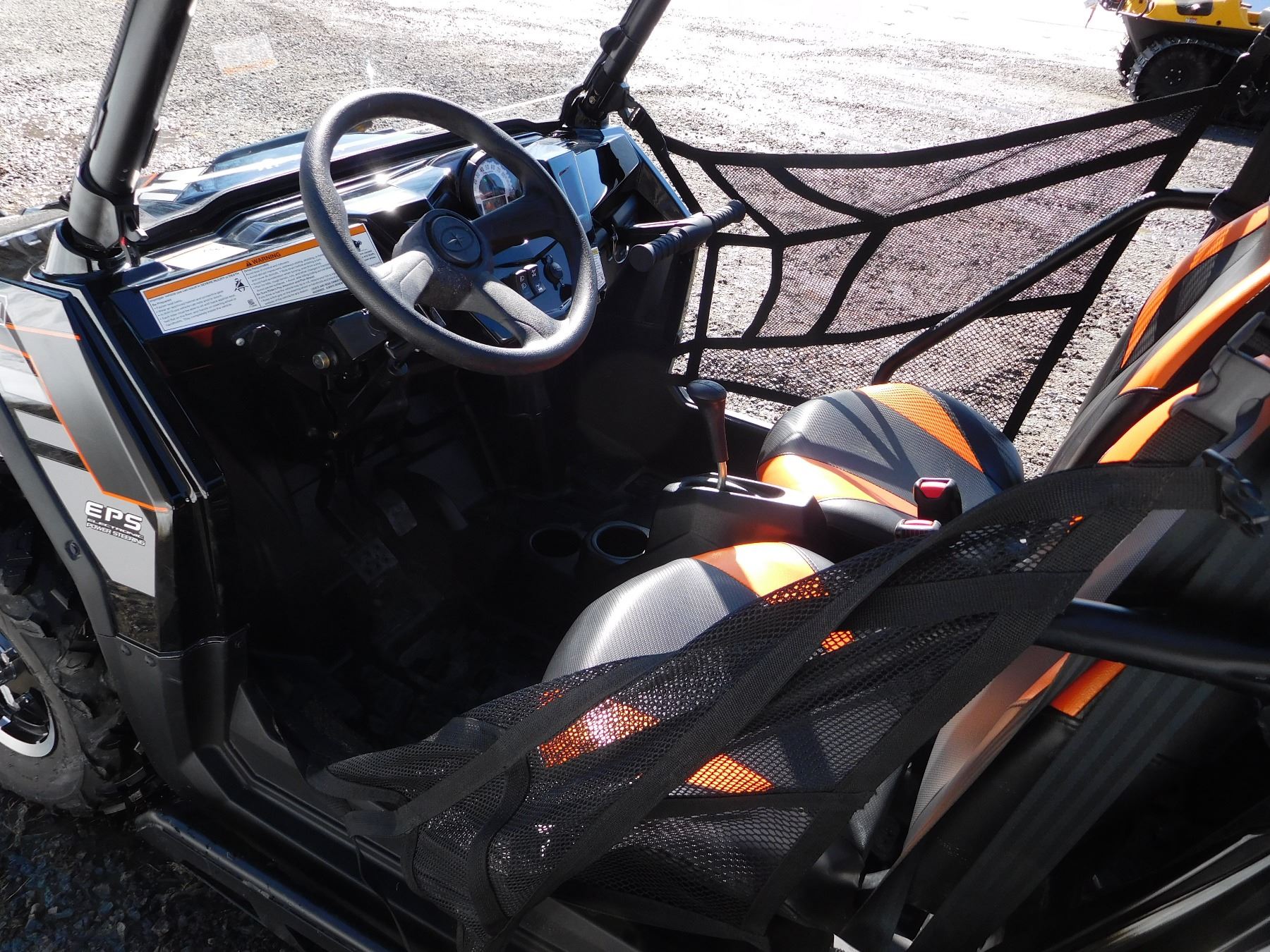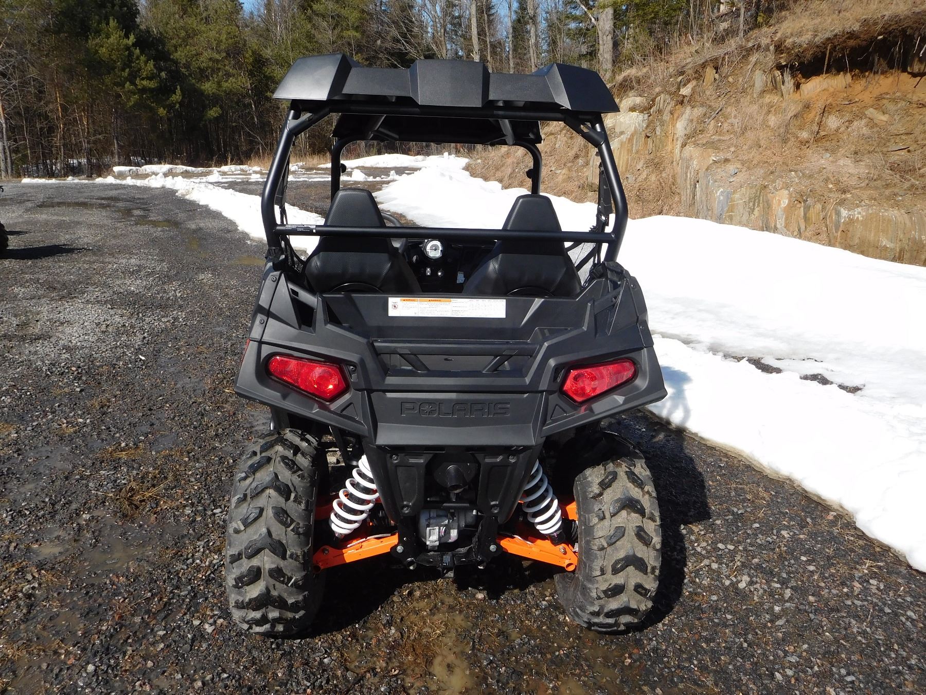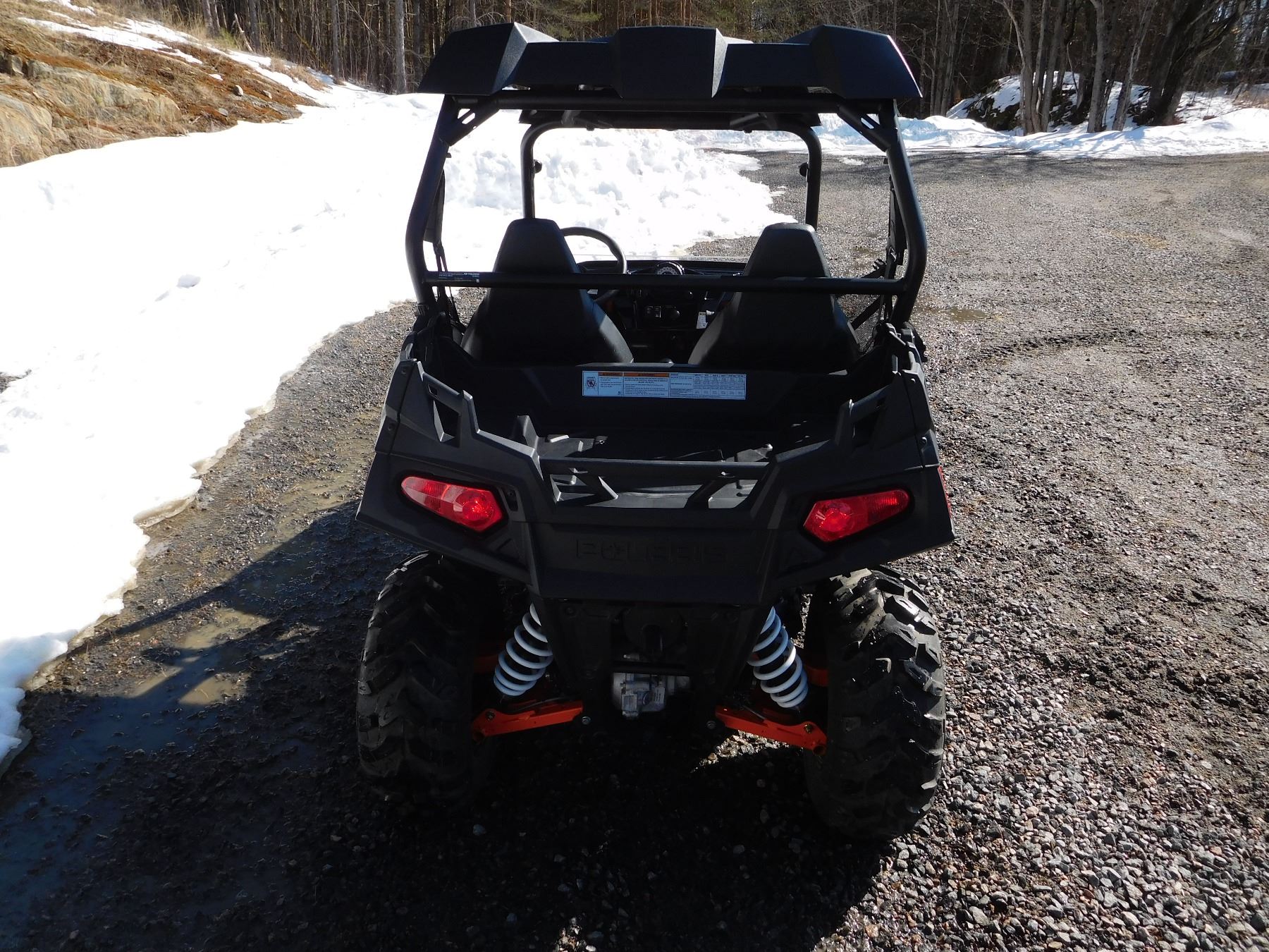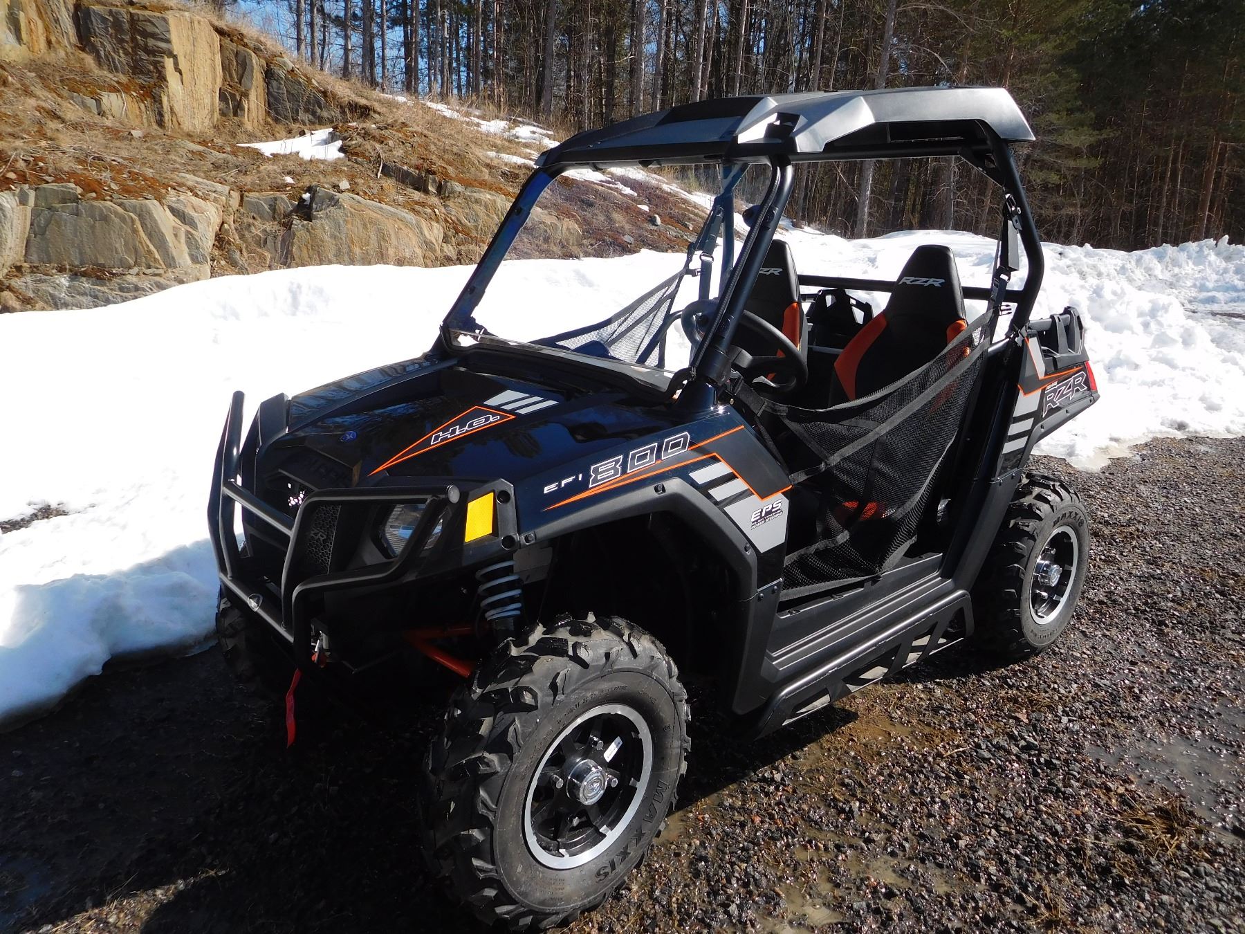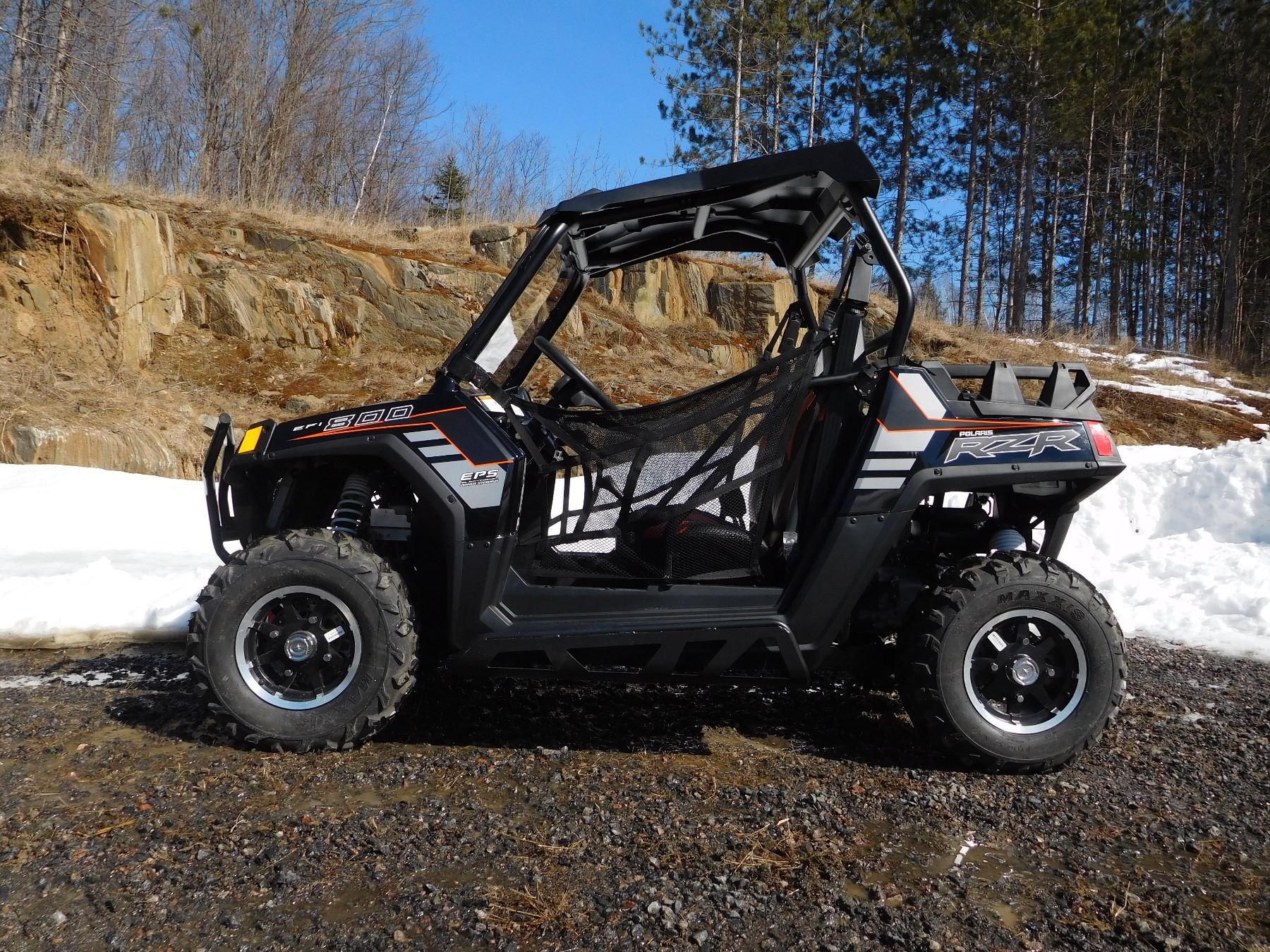 "LEEPS" BLACK AND ORANGE TRIM, BUCKET SEATS, WINCH, SIDE NETS, 3500 LB. POLARIS WINCH, RZR ROOF, POLY WINDSHIELD, FRONT BRUSH GAURD, POLARIS ROCK SLIDERS, NEW PURCHASE PRICE: $15,500. ONLY 21.6 KM., NO SHIPPING