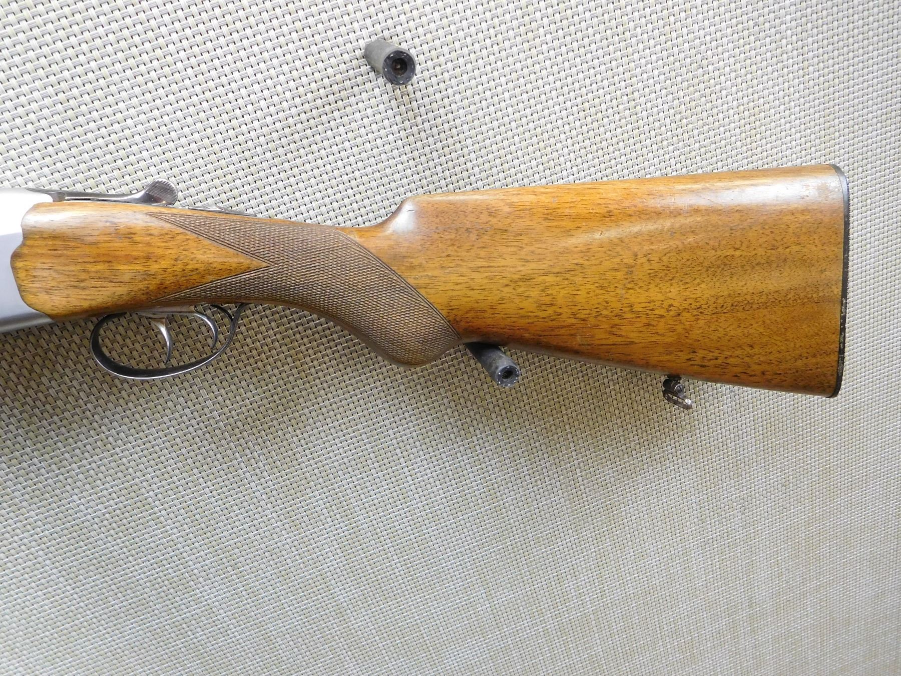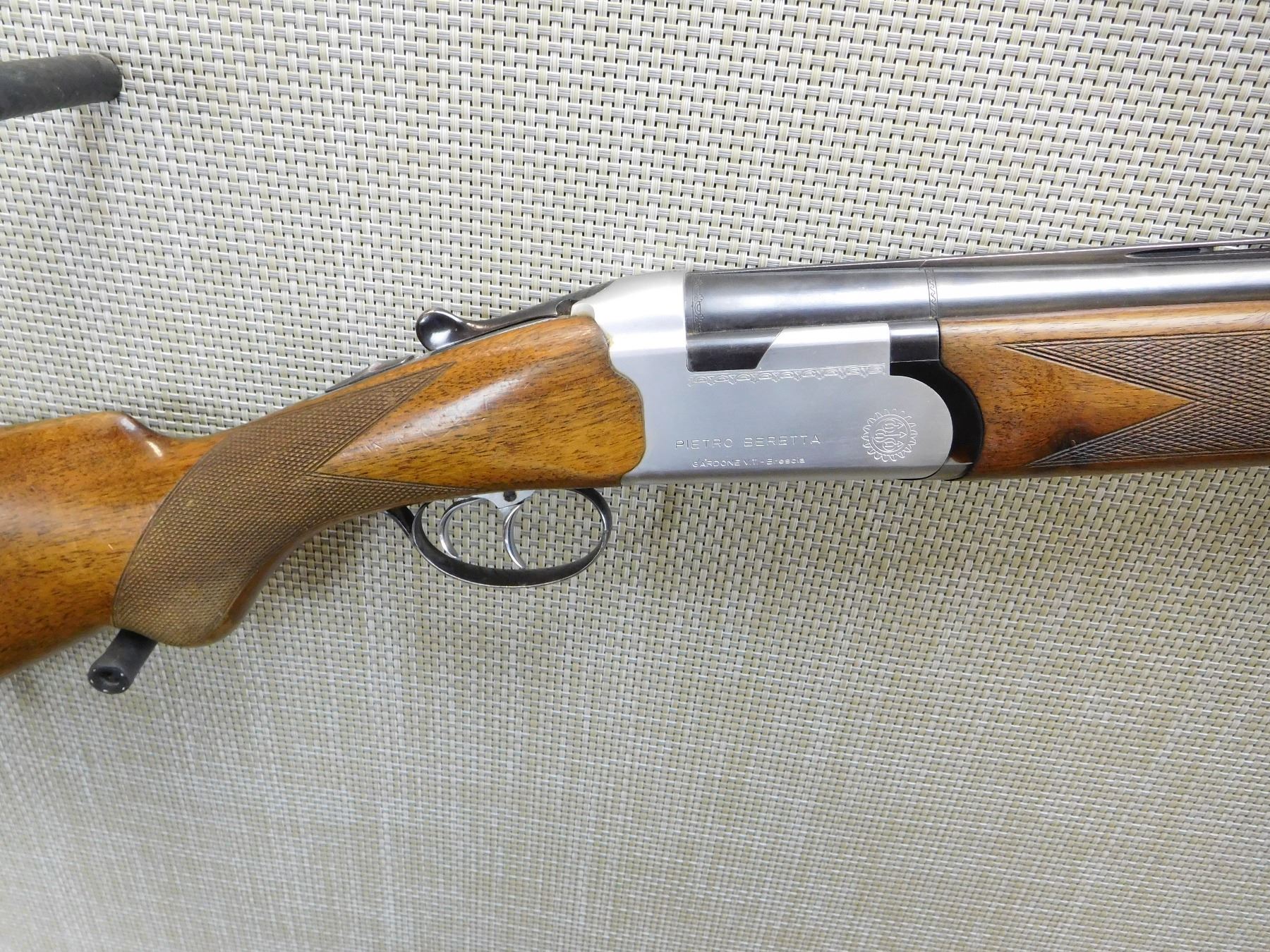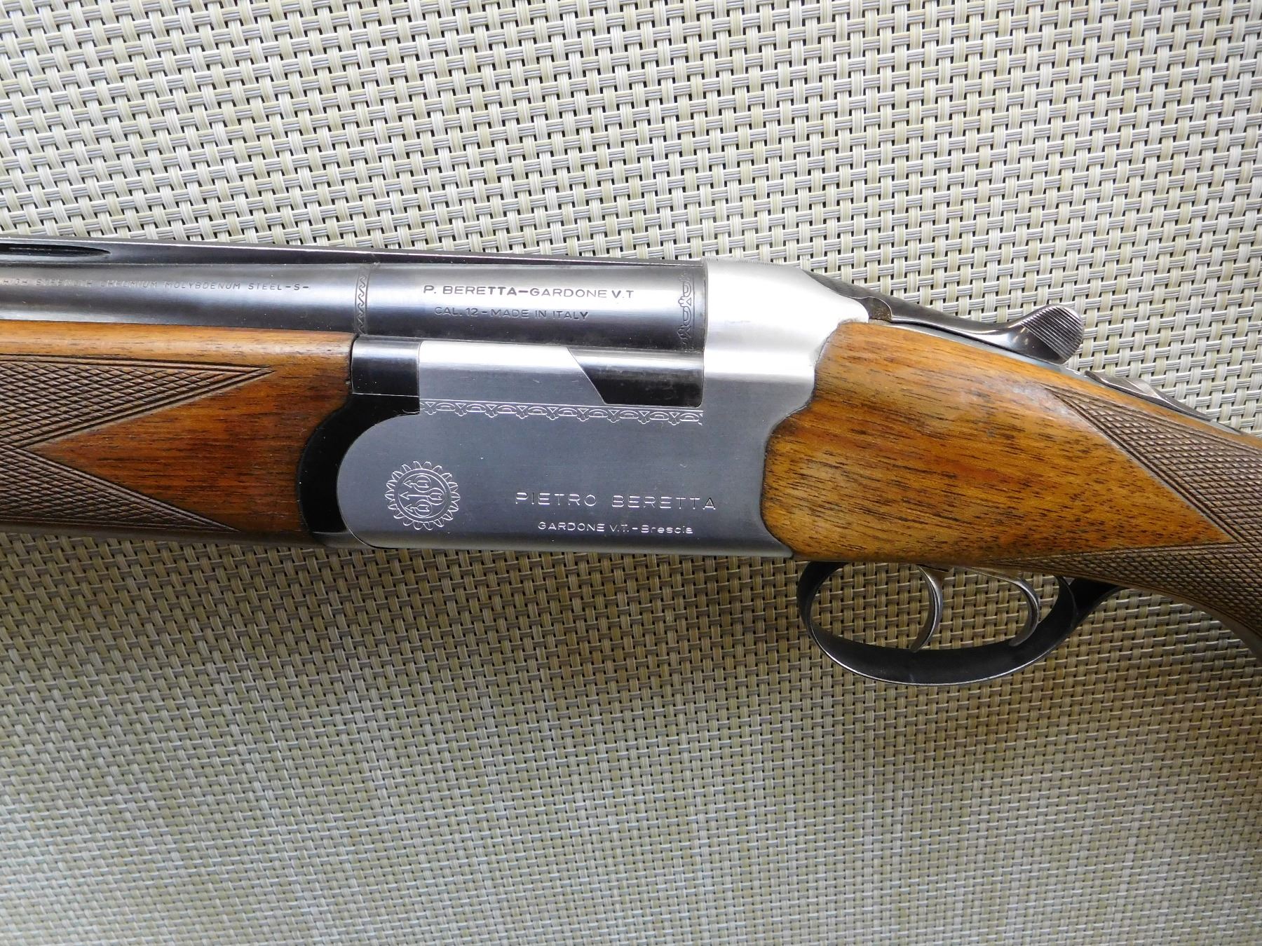 ITALIAN MADE BERRETTA, HAS 30" BARRELS, OVER AND UNDER ACTION,RAISED VENTED RIB, BEAD FRONT SIGHT, FIXED FULL AND MODIFIED CHOKES, HAMMERLESS DOUBLE TRIGGER, SLING SWIVELS, CHECKERED PISTOL GRIP AND FORESTOCK, HARD RUBBER BUTT PLATE, BRILLIANT BORES, TANG SAFETY, EXTRACTORS, 14 1/4" LENGTH OF PULL, CONDITION 8/10, CANADIAN CLASS NON RESTRICTED