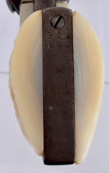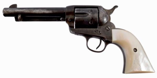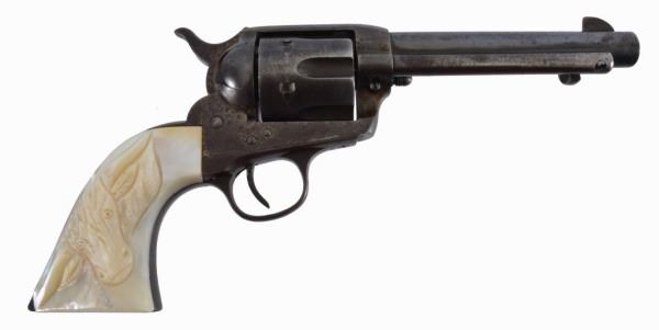 * Serial no. 324169 .38-40 5 1/2" barrel. in good working condition with traces of blue over a brown patina. mother of pearl carved steer head grips.