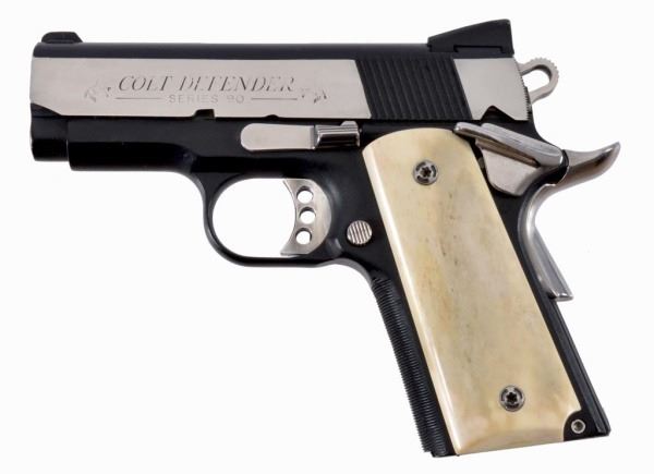 * Custom built Colt Defender 1911 .45. Custom cerakote, with a lot of work done to the action. Bone grips. Acquired from retired Texas Ranger Captain & US Marshal Jack Dean.