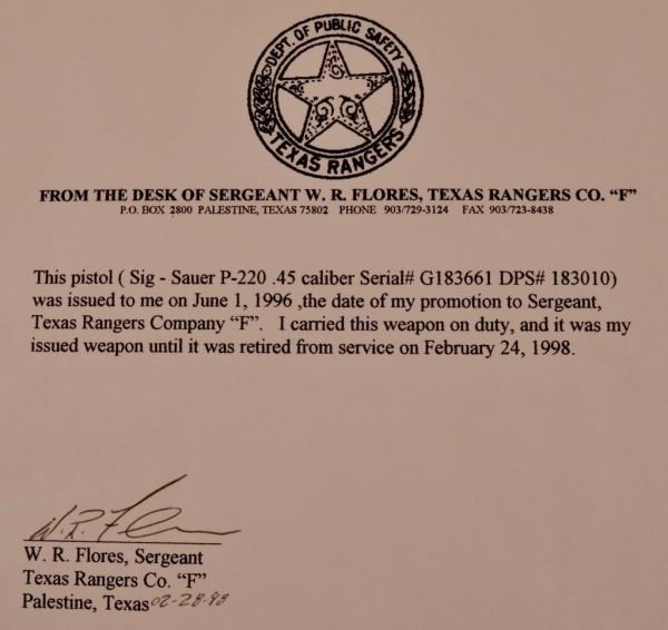 Lot 87 Texas Ranger Rudy Flores' Sig Sauer P220 .45