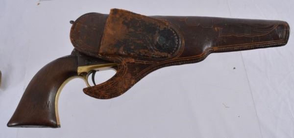 Serial No. 18418 in solid mechanical condition with period California open top holster.
