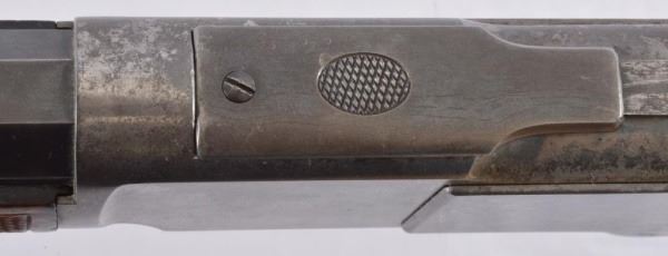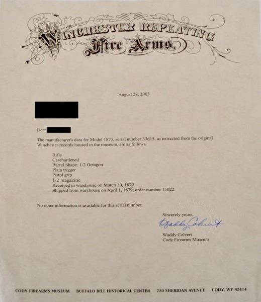Rare 2nd model, Special order, with thumb print dust cover. Case hardened, 1/2 octagon barrel, 1/2 magazine. Shipped April 1, 1879. Comes with factory letter. S/N 33615
