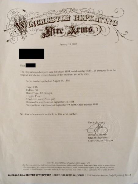 Rare full length magazine, on a half round, half octagon barrel. Scarce and unusual. Checkered stock, pistol grip. Shipped September 19, 1898. With Factory letter. S/N 46831.