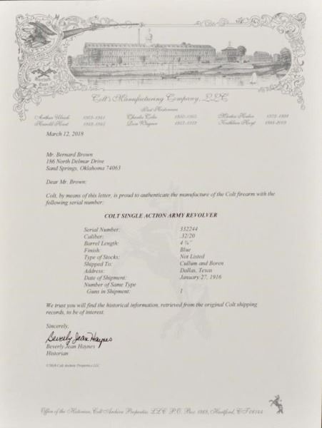 Lot 123 Colt Model 1873 SAA .32-20 Dallas Texas Shipped
