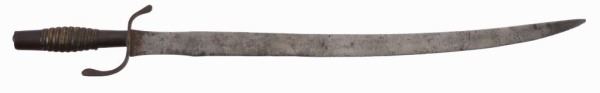 Mexican/Spanish, ca. 1800’s Espada Ancha short sword cutlass. Hand forged in the Spanish Colonies. Ribbed grip and iron pommel and ferrule. The blade is hand forged, plain and slightly curved. Blade length is 22 inches and 27 inches overall.