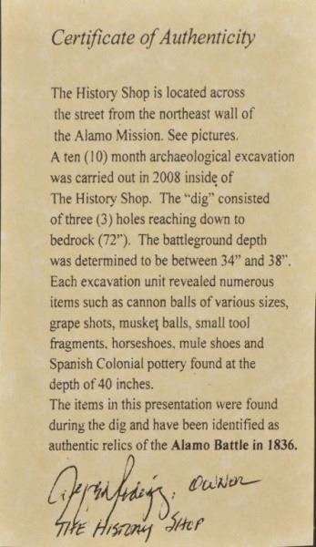 Lot 162 Alamo Battlefield Relics