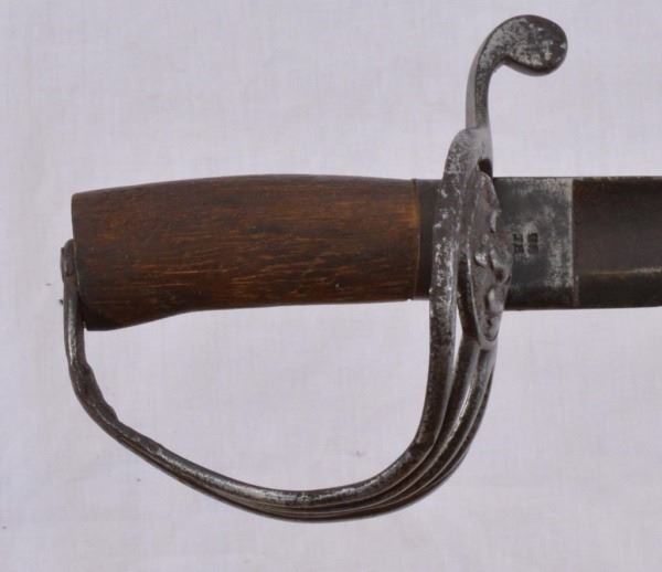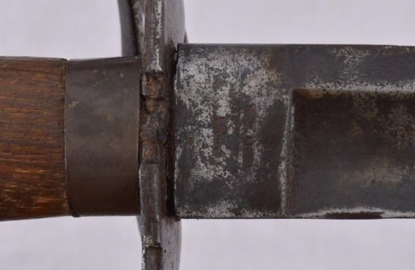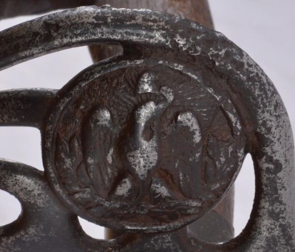 Mexican War era sword marked U.S. (Inspector Marked J.H.) 1846. N.P. Ames. Note the US Eagle on the guard. 30 inches overall in length but cut down at the same time the original grips were replaced. The sword saw service well into the Mexican Revolution period.