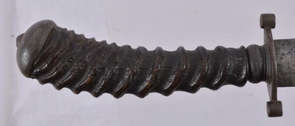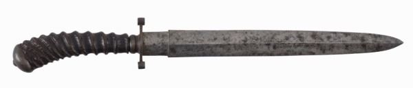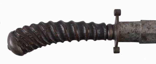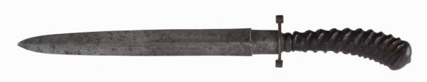 Hunting knife early Bowie style, with 12" blade. Ca. 1830. One of the big and impressive knives imported into the USA at the time of the Alamo