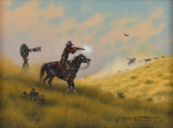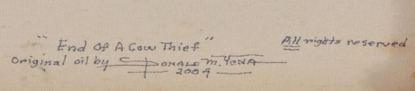 Lot 212 Donald Yena "End Of A Cow Thief" Oil Painting