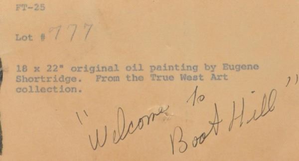 "Welcome to Boot Hell" Comes with copy of August 1936 "True West Magazine" that fatured this painting on the cover. 19" x 24"