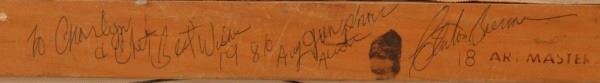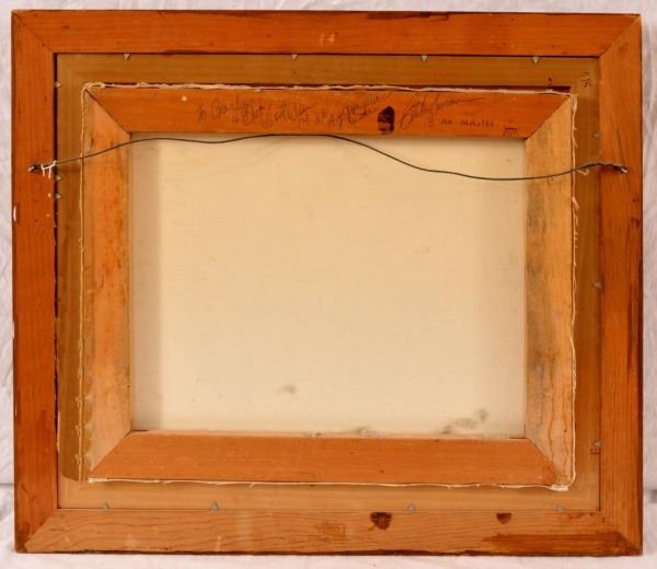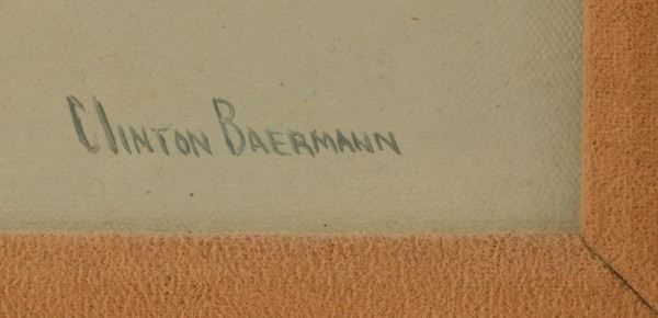 Back of framed signed by Clinton Baermann. 18" x 14".