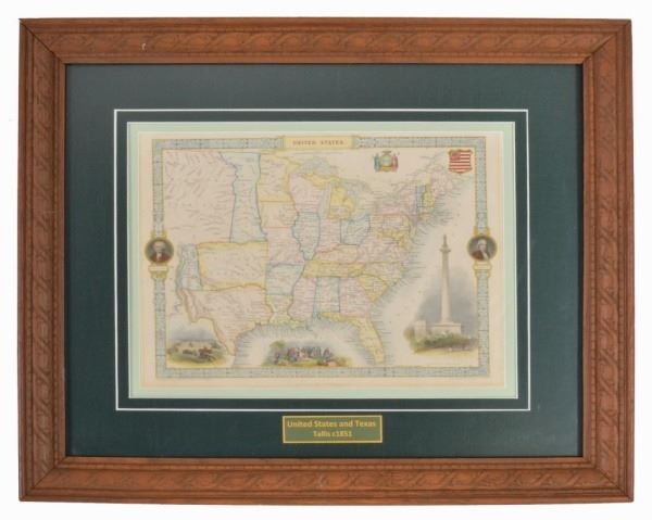 Lot 402 Map of United States & Texas Tallis Circa 1851