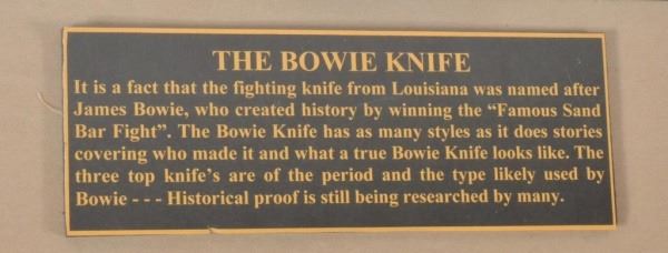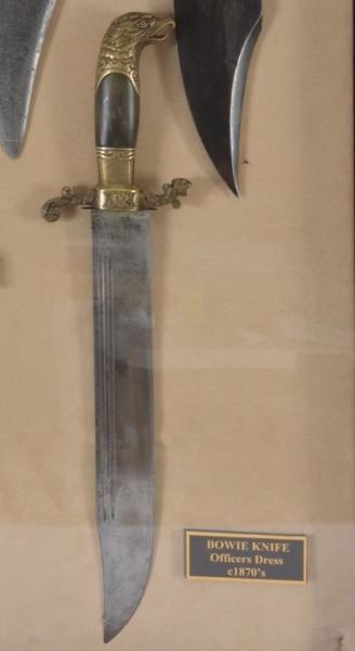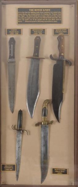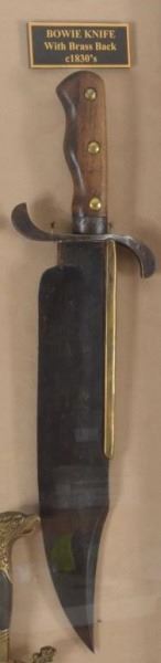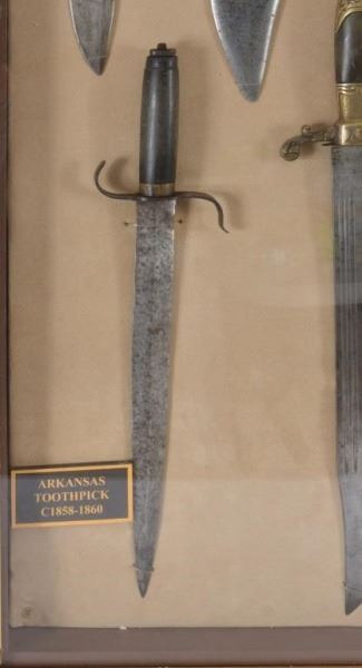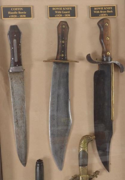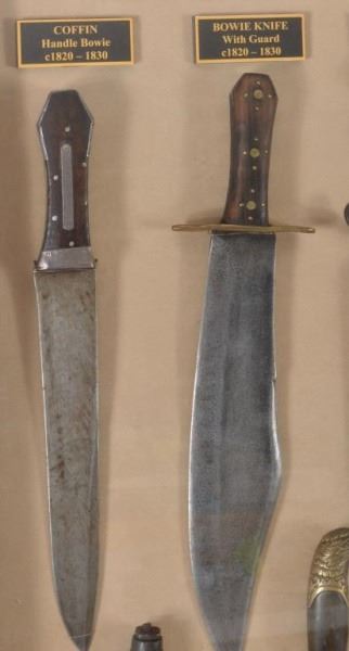 Coffin Handle Bowie, circa 1820-1830; Bowie Knife with Guard, c1820-1830; Bowie Knife with Brass Back, circa 1830s; Arkansas Toothpick, circa 1858-1860; and Bowie Knife, Officer's Dress, circa 1870s.