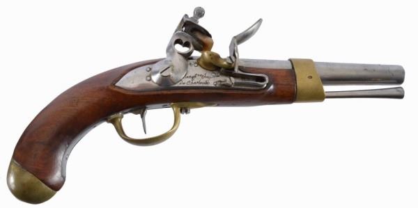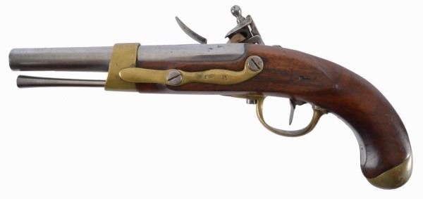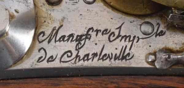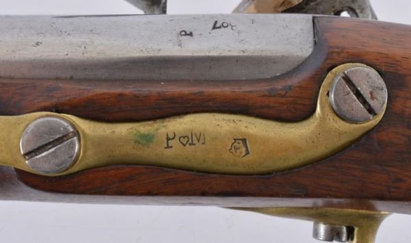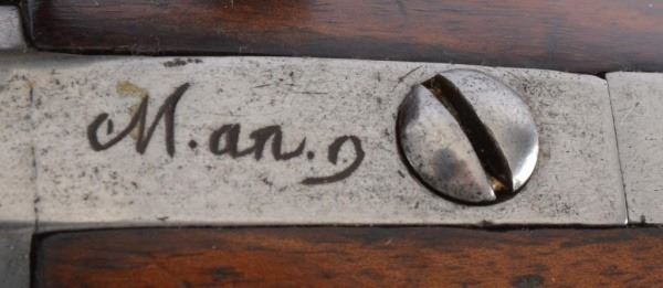 France. Marked XIII M. an. g. Very good condition. Chrome barrel and lock plate, brass barrel band, trigger guard and butt cap.