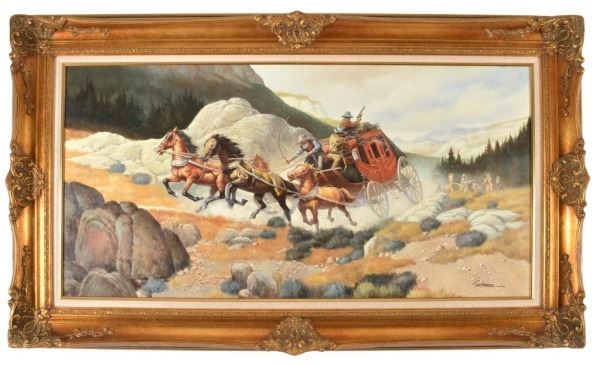 Lot 337 S. Horman "Chase By Fire" Oil Painting