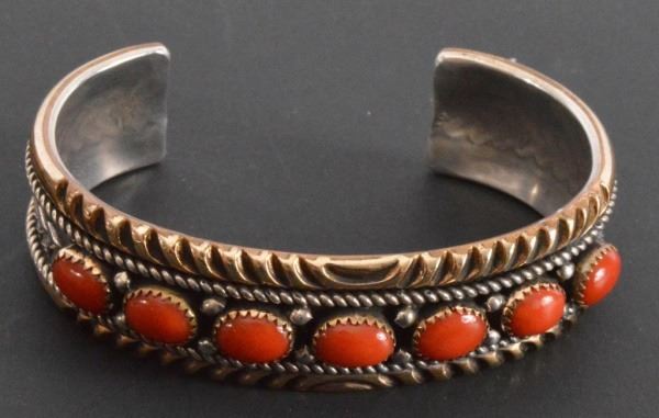Lot 380 Sterling Silver Coral Indian Bracelet