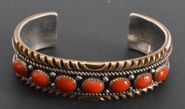 Sterling Silver Coral Indian Bracelet