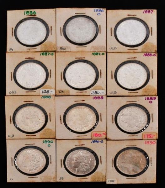 Lot 461 Collection of 12 US Silver Dollars 1886-1890