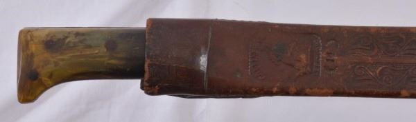 Mexican Cavalry machete used during the Mexican Revolution with leather scabbard