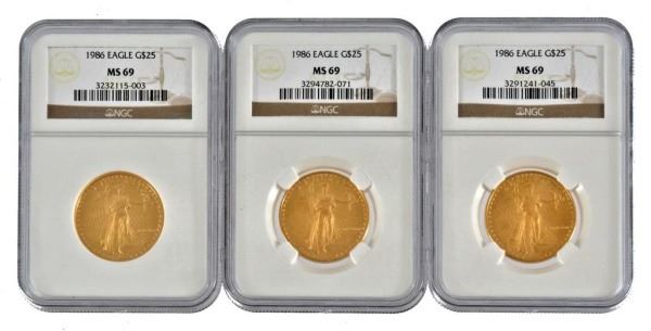 Lot 326A 3 1986 Eagle G $25 Gold Coins