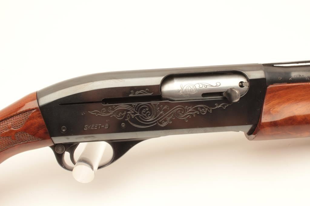 Remington Model 1100 Skeet-B semi-automatic shotgun, 26” ventilated rib barrel, blued finish, wood stocks, S/N L431556V, Skeet choke, 85-95% overall, very good used condition. (Modern). Est.: Lot Title $300-$600.