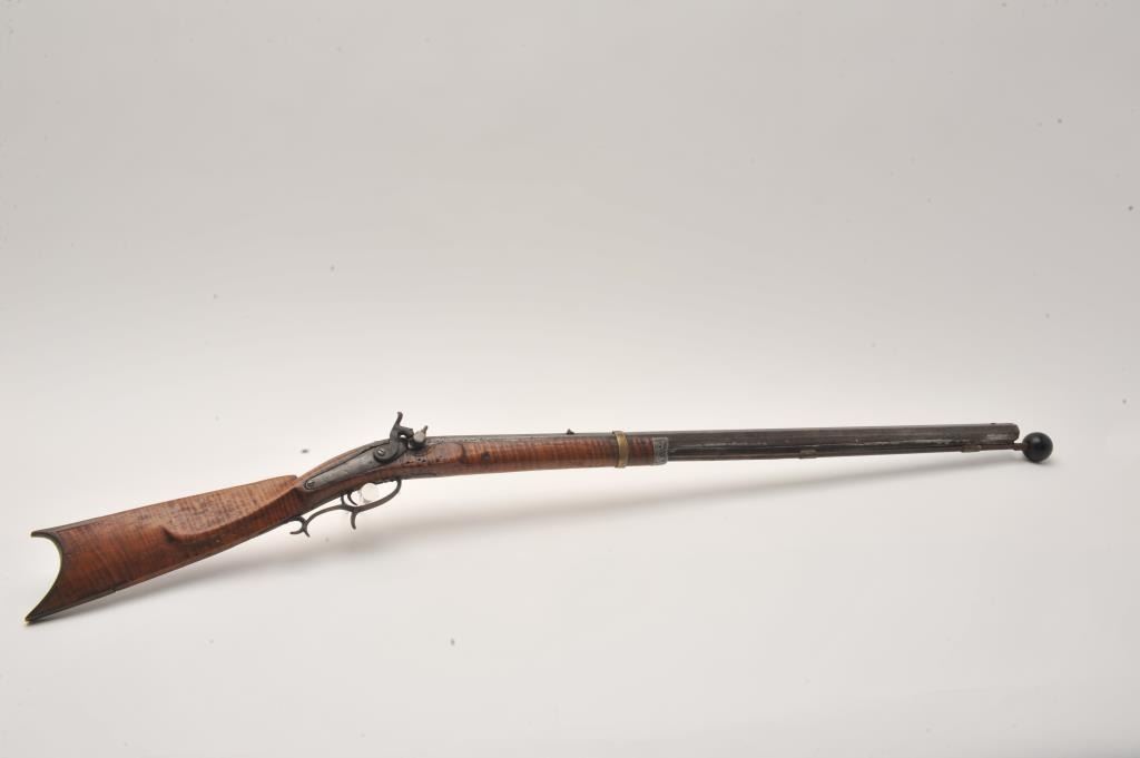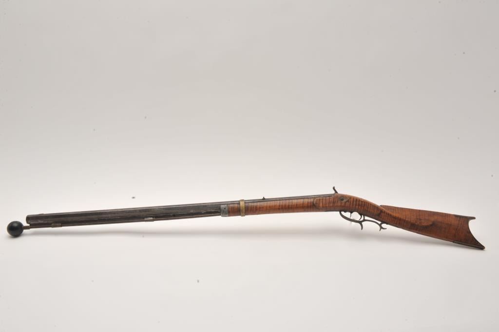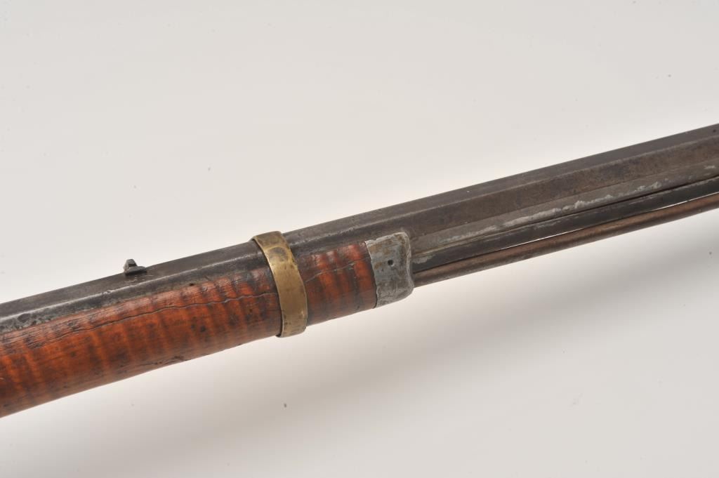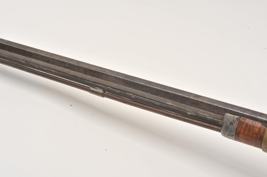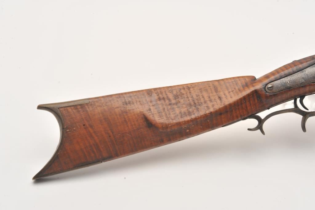 Half stocked American plains rifle, earlier barrel; nicely signed in script “Jacob Fisher”; shows dark patina to metal surfaces and heavy use. (Antique). Est.: $300-$600.